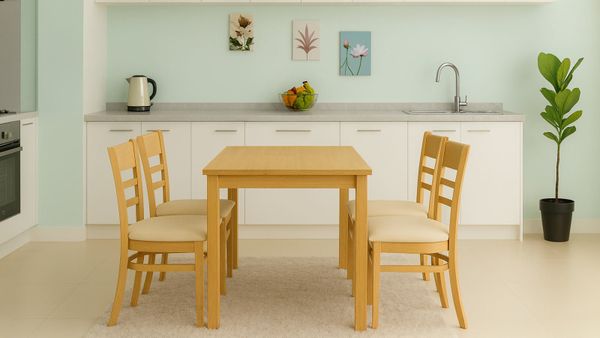 Bàn ăn cabin mang thiết kế đơn giản nhưng tinh tế, phù hợp với nhiều không gian nội thất từ hiện đại đến truyền thống. Sản phẩm được làm từ gỗ cao su tự nhiên, xử lý chống cong vênh và mối mọt, bền đẹp theo thời gian. Màu gỗ sáng mang đến cảm giác ấm áp, gần gũi cho bữa ăn gia đình.
