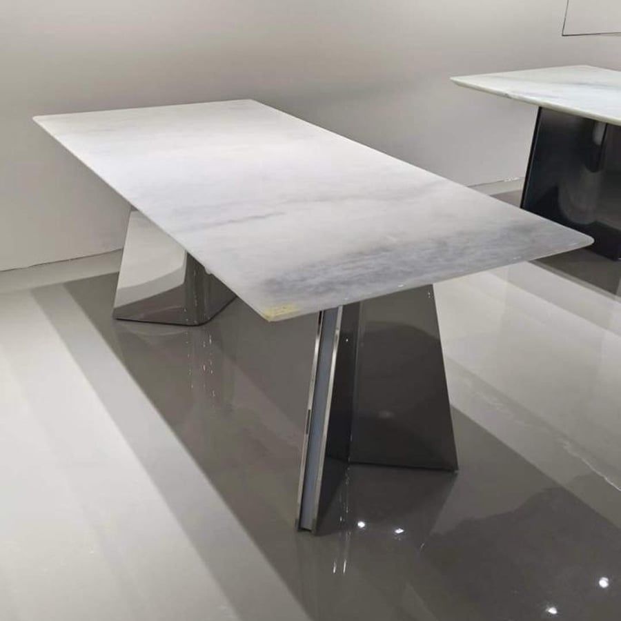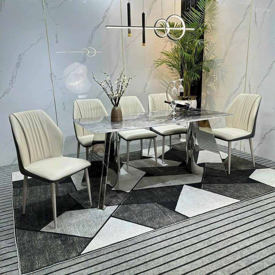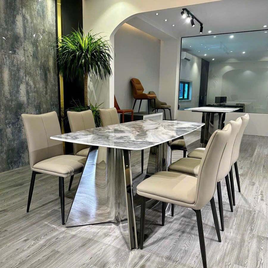 Bàn Ăn Inox Tráng Gương Mặt Đá Carol – Sang Trọng, Hiện Đại, Bền Bỉ