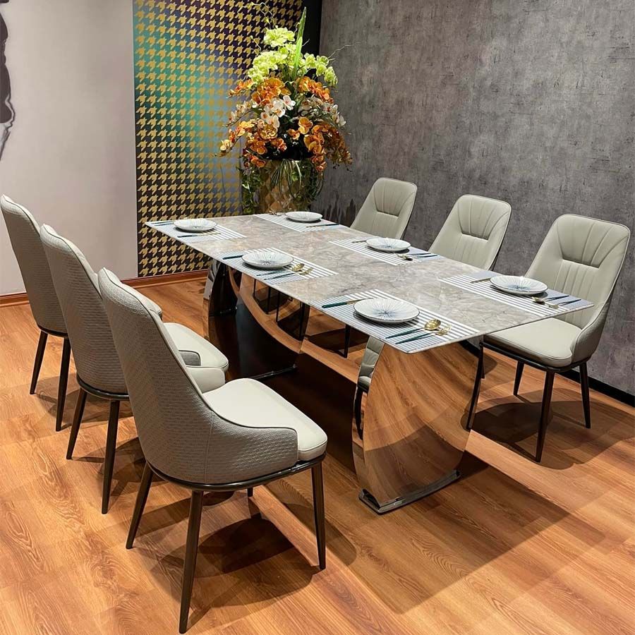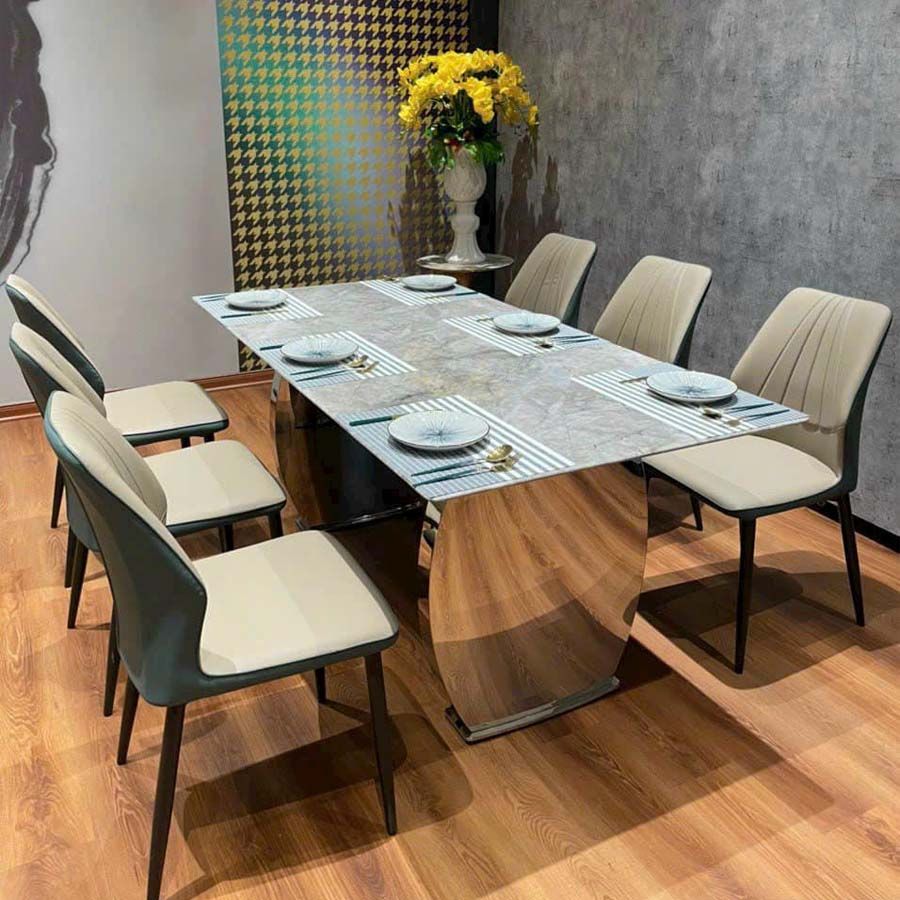 Bàn Ăn Inox Tráng Gương Mặt Đá Milenium – Sang Trọng, Hiện Đại, Bền Bỉ