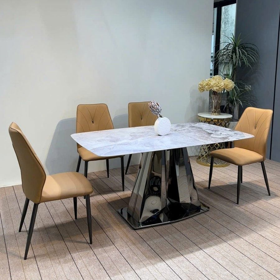 Bàn Ăn Inox Tráng Gương Mặt Đá Selene HAK69