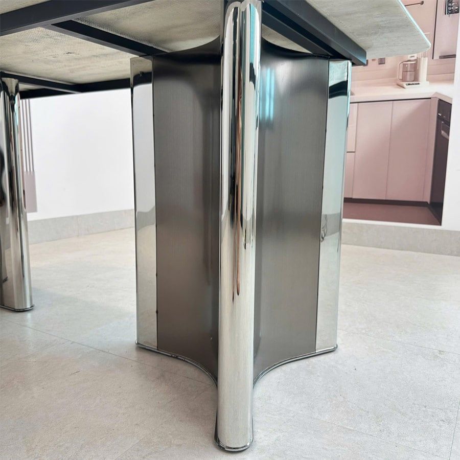 - Chân bàn inox mạ vàng hồng titan: sang trọng, chống gỉ sét, bền bỉ theo thời gian.