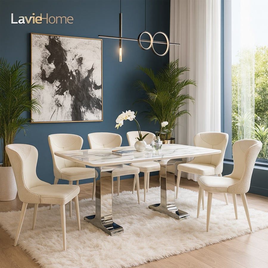 Bàn ăn mặt đá cao cấp HAK64 là lựa chọn tuyệt vời cho những gia chủ yêu thích sự sang trọng, hiện đại và bền bỉ. Đây không chỉ là nơi sum họp gia đình trong những bữa ăn ấm cúng mà còn là điểm nhấn tinh tế, khẳng định phong cách sống đẳng cấp của gia đình bạn.