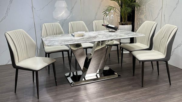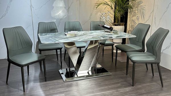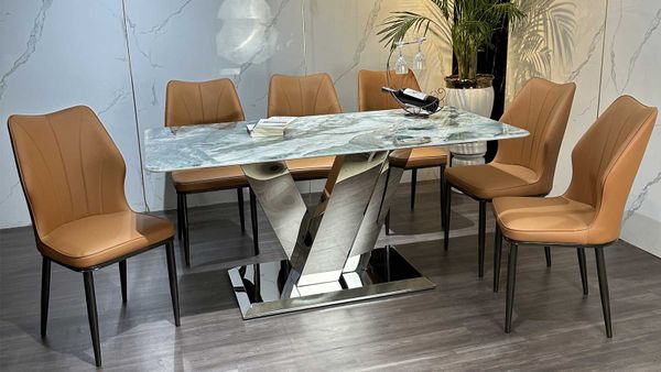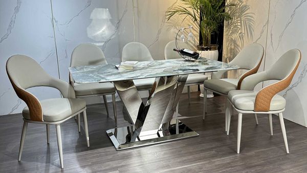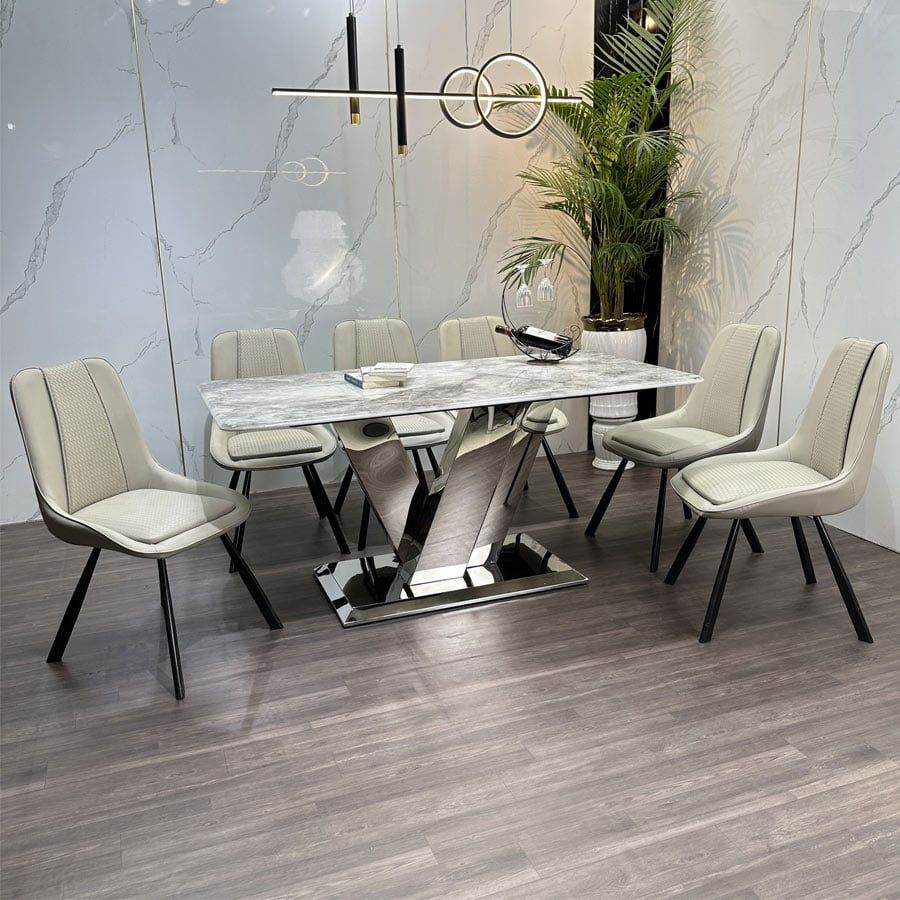 Bàn ăn mặt đá cao cấp HAK66 mang đến nét đẹp hiện đại và tinh tế cho mọi không gian phòng ăn. Với thiết kế sang trọng, mặt đá thạch anh tinh thể kết hợp cùng chân bàn inox bóng sáng tạo nên tổng thể hài hòa, sang trọng và đầy sức hút.