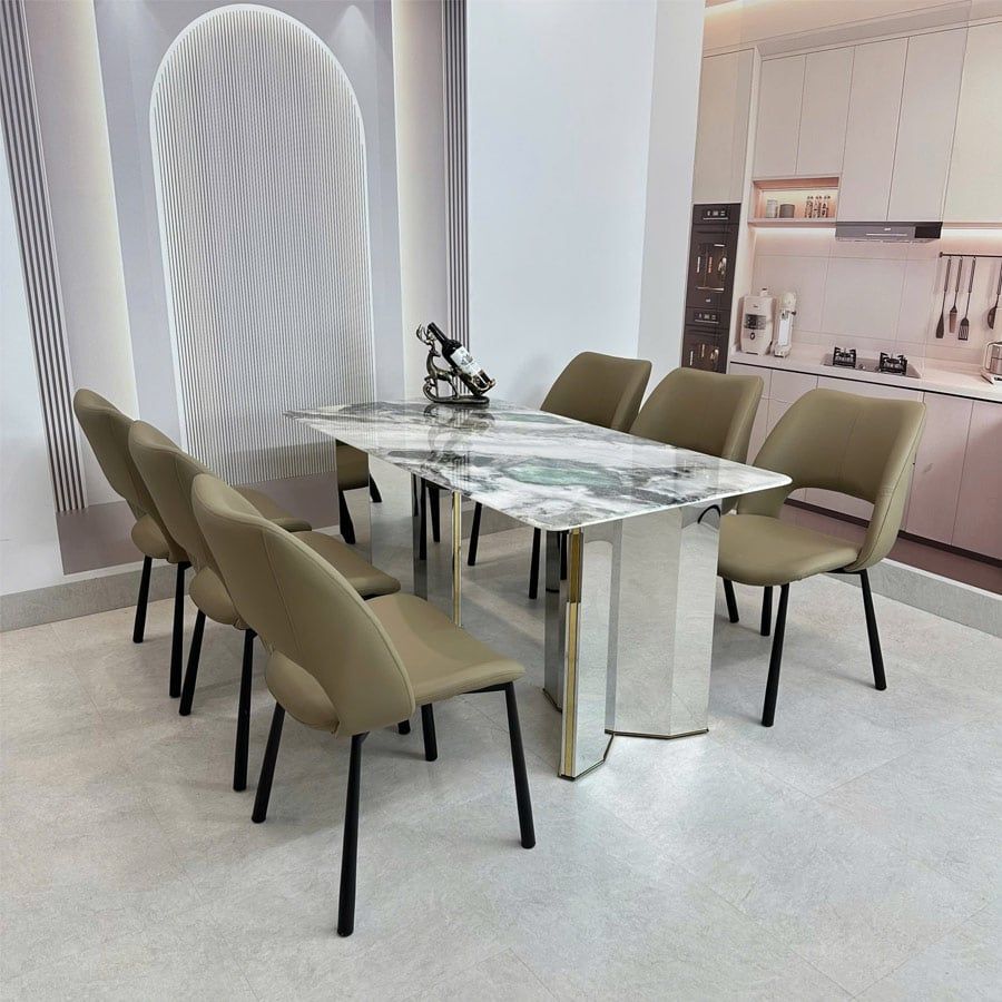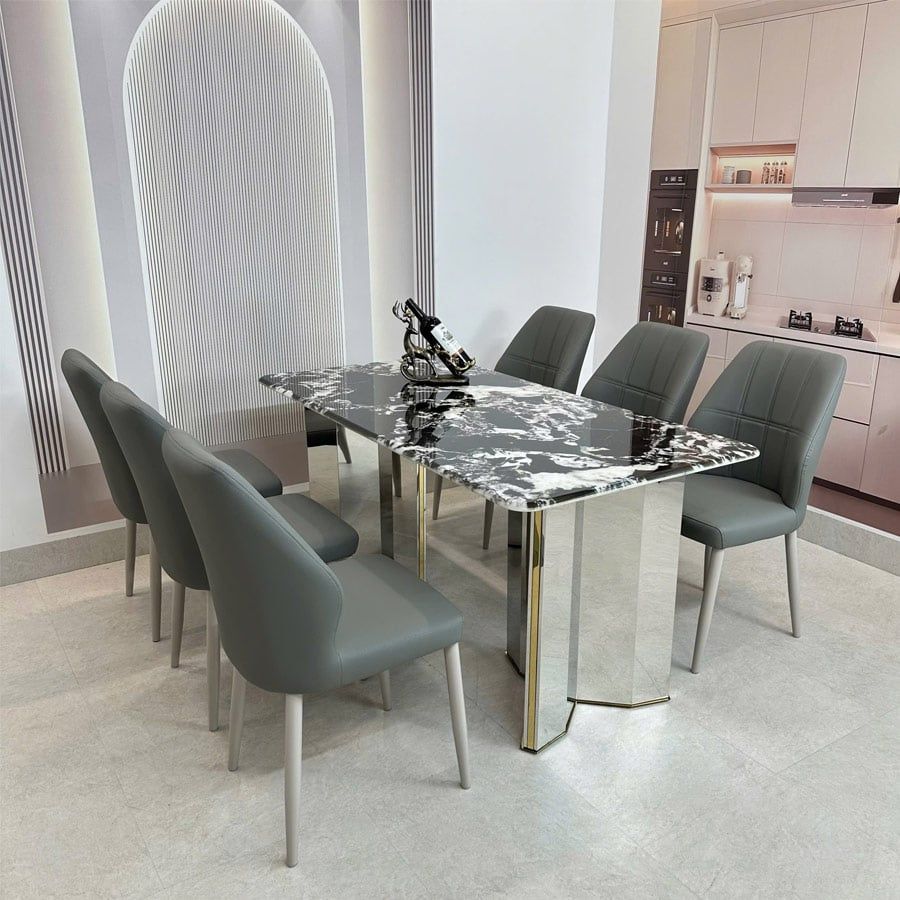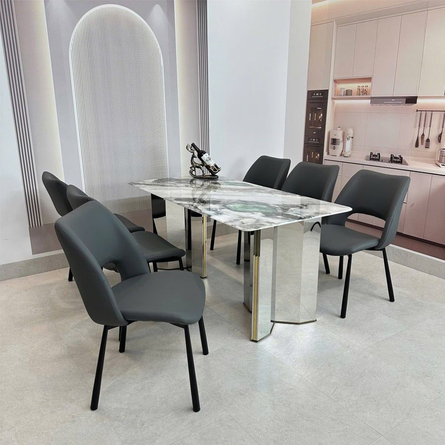Sản phẩm bàn ăn cao cấp mặt đá không chỉ có tính thẩm mỹ cao mà còn đảm bảo độ chắc chắn, chịu lực tốt, đáp ứng nhu cầu sử dụng lâu dài cho gia đình. Với kiểu dáng thanh lịch, bàn HAK78 dễ dàng kết hợp cùng nhiều mẫu ghế khác nhau, giúp không gian phòng ăn trở nên nổi bật và cuốn hút.
