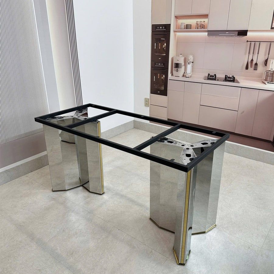 - Chân bàn inox cao cấp sáng bóng, chống gỉ sét, chịu lực tốt.