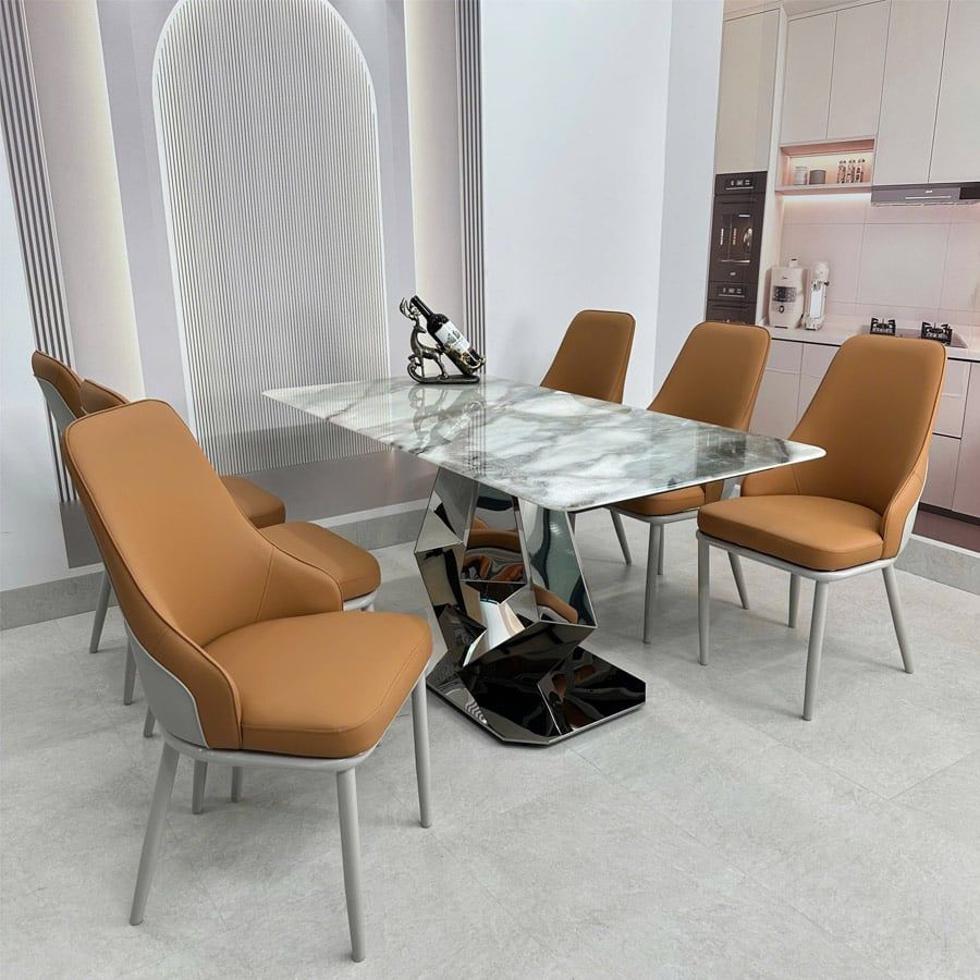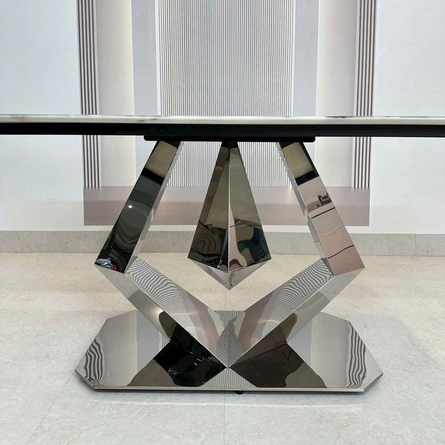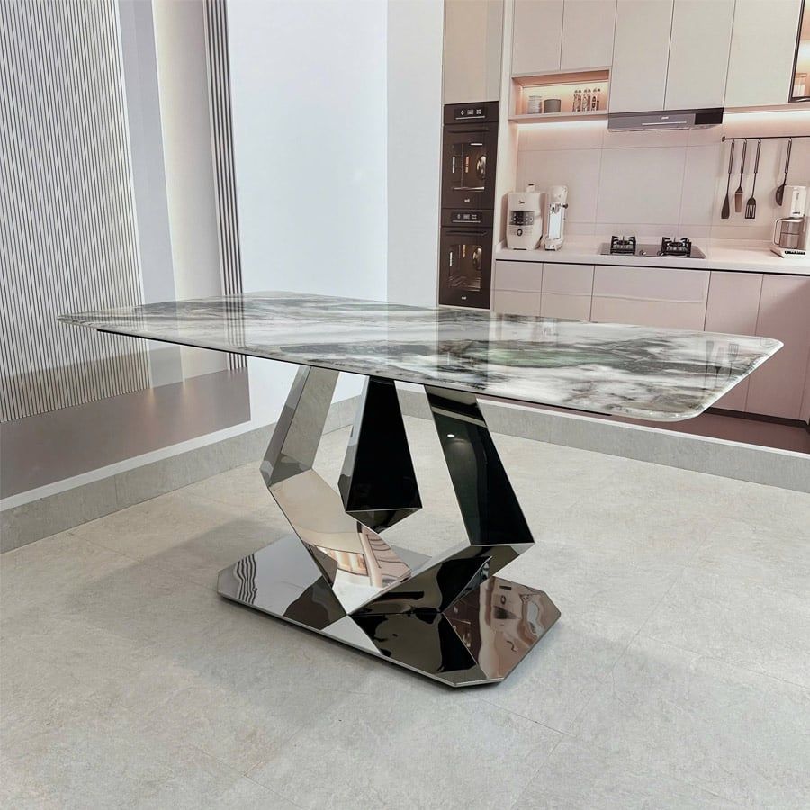 Bàn ăn mặt đá cao cấp HAK79 là sự lựa chọn hoàn hảo cho không gian phòng ăn hiện đại. Với mặt đá thạch anh tinh thể tự nhiên, sản phẩm không chỉ mang đến sự sang trọng mà còn đảm bảo độ bền vượt trội. Thiết kế chân bàn inox chắc chắn, được tạo hình độc đáo, mang lại vẻ đẹp tinh tế và đẳng cấp cho ngôi nhà của bạn.