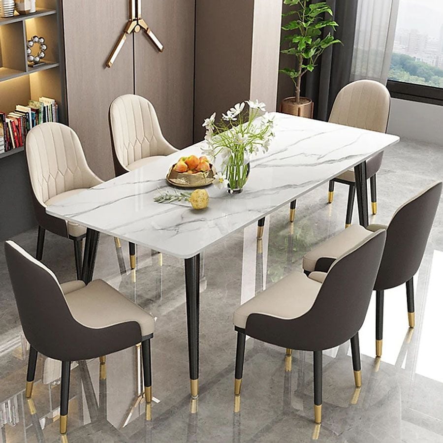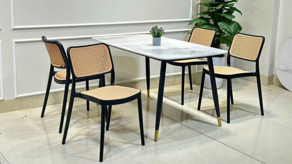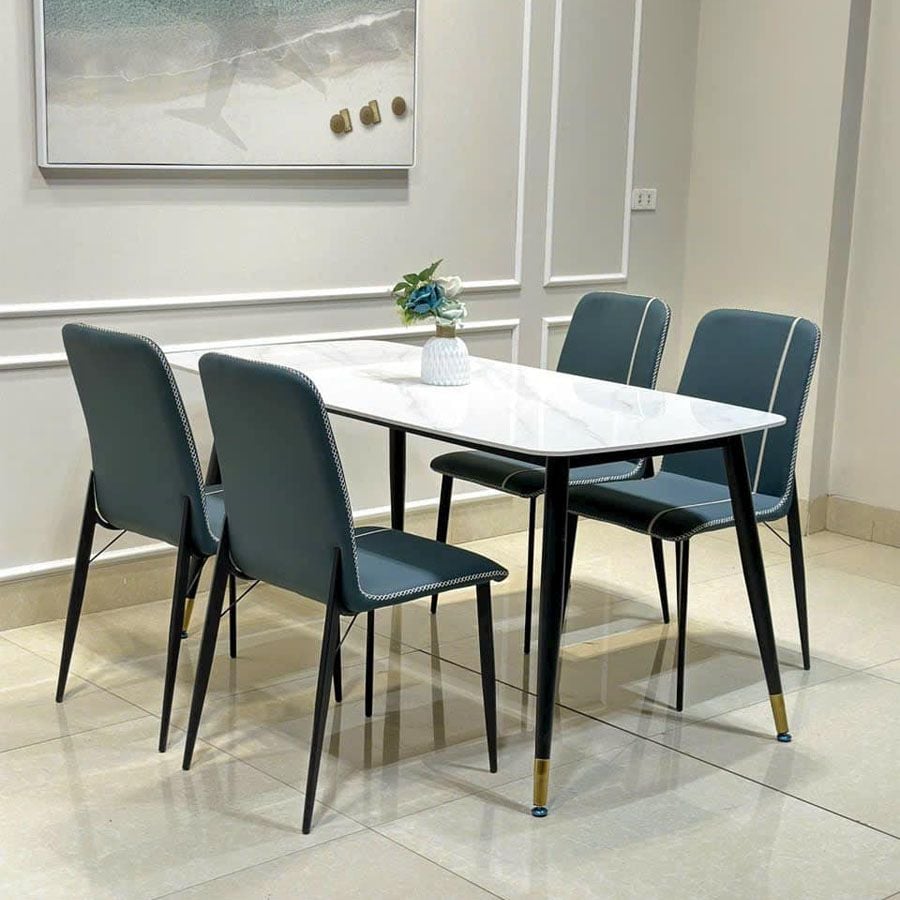 - Mặt bàn ăn bằng đá ceramic: Chống trày xước, chống thấm nước, bền đẹp theo thời gian.