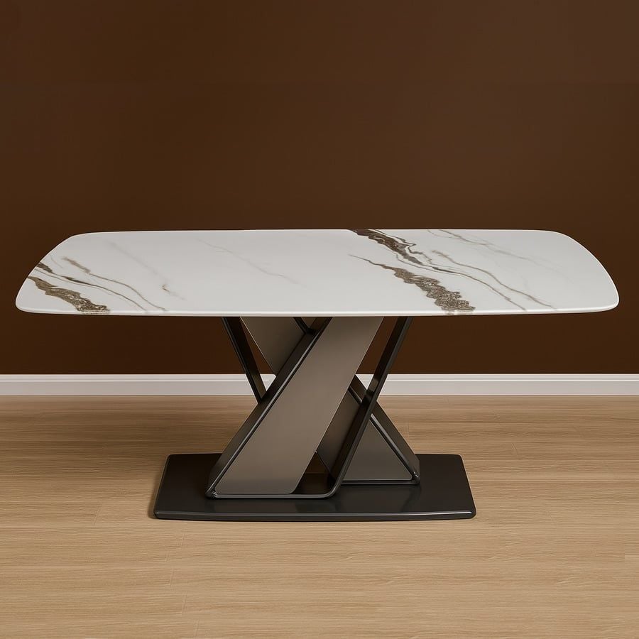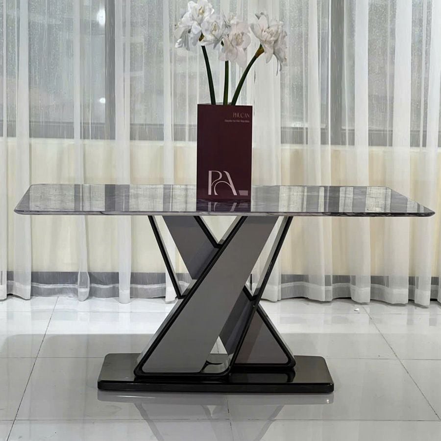 Bàn ăn mặt đá HSCBA022 sở hữu thiết kế hiện đại với điểm nhấn là phần chân bàn chữ X cách điệu vững chắc, tạo nên tổng thể ấn tượng và đầy tính nghệ thuật. Mặt bàn được làm từ đá ceramic cao cấp, không chỉ mang lại vẻ ngoài sang trọng mà còn bền bỉ theo thời gian. Đây là mẫu bàn ăn cao cấp mặt đá hoàn hảo cho những không gian sống cao cấp và tinh tế.