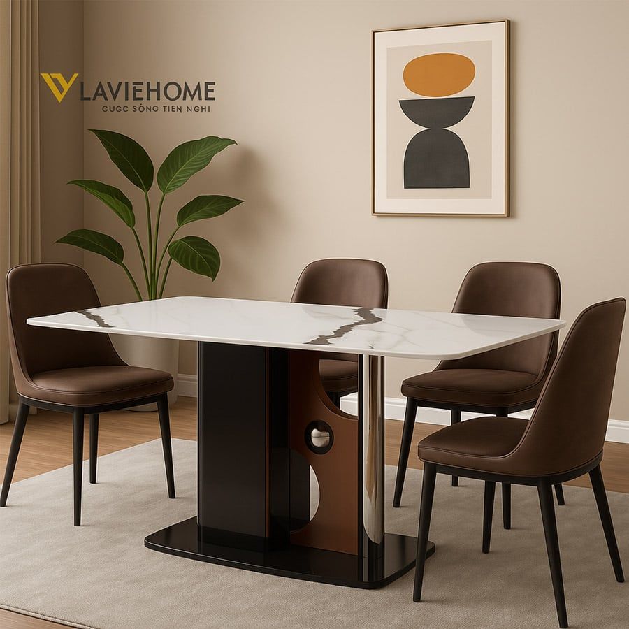 Bàn ăn mặt đá HSBA026 tại Laviehome là sự kết hợp tinh tế giữa hiện đại và nghệ thuật. Thiết kế vững chắc, chất liệu cao cấp và kiểu dáng nổi bật sẽ là điểm nhấn hoàn hảo cho không gian sống đẳng cấp của bạn.
