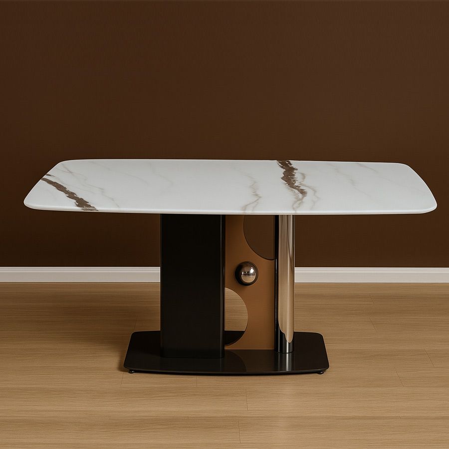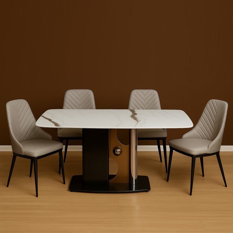 Bàn ăn mặt đá HSBA026 gây ấn tượng với phần chân bàn thiết kế mới lạ, phối hợp hài hòa giữa sắt sơn tĩnh điện và mica bóng hiện đại. Mặt bàn sử dụng chất liệu đá ceramic cao cấp vân mây trắng thời thượng, vừa đẹp mắt vừa dễ dàng vệ sinh. Đây là mẫu bàn ăn cao cấp mặt đá lý tưởng cho không gian ăn uống mang phong cách tối giản, thanh lịch nhưng vẫn đậm dấu ấn cá nhân.