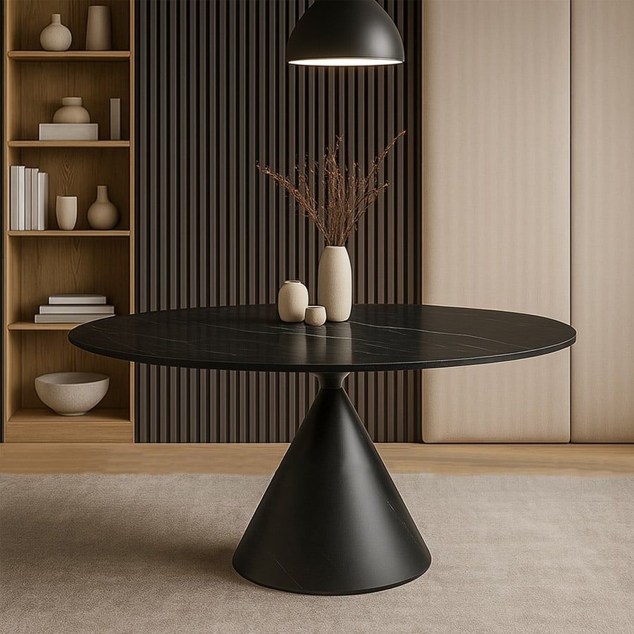 Bàn ăn mặt đá tròn HSBA042 mang đến sự hài hòa giữa nghệ thuật thiết kế hiện đại và tính ứng dụng cao trong không gian sống. Với đường kính 1300mm, mẫu bàn này lý tưởng cho gia đình 4–6 người, tạo cảm giác quây quần ấm cúng. Mặt bàn ăn cao cấp mặt đá HSBA042 làm từ đá ceramic cao cấp – chống trầy xước, chống thấm, vân mây tự nhiên tạo điểm nhấn sang trọng. Chân bàn hình nón vững chắc, làm từ sắt sơn tĩnh điện, mang lại độ bền vượt trội và sự ổn định tối đa.