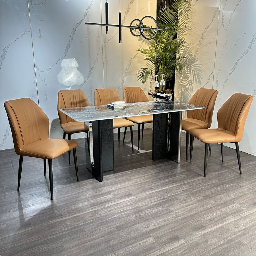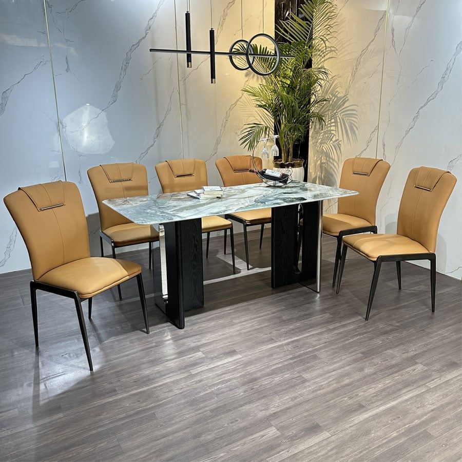 Bàn ăn mặt đá Smoke HAK68 là sự kết hợp độc đáo giữa nét đẹp sang trọng của đá bạch ngọc và cấu trúc chân bàn ấn tượng làm từ gỗ tự nhiên kết hợp inox cao cấp. Thiết kế bàn ăn này tạo nên một tổng thể hài hòa giữa cổ điển và hiện đại, nâng tầm không gian sống và mang lại cảm giác đẳng cấp cho mỗi bữa ăn gia đình.
