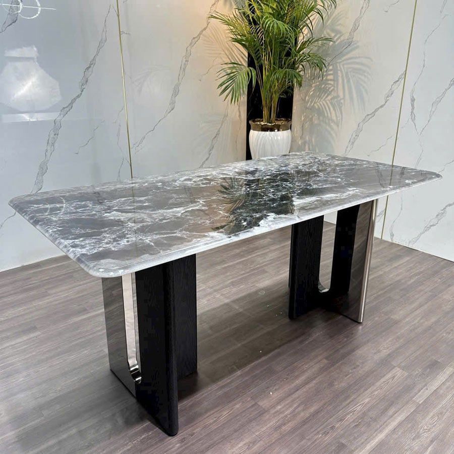Bàn ăn mặt đá Smoke là lựa chọn lý tưởng dành cho những ai yêu thích vẻ đẹp tự nhiên và hiện đại. Mẫu bàn ăn mặt đá cao cấp này không chỉ phục vụ chức năng ăn uống mà còn là món nội thất làm nổi bật không gian sống của bạn.
