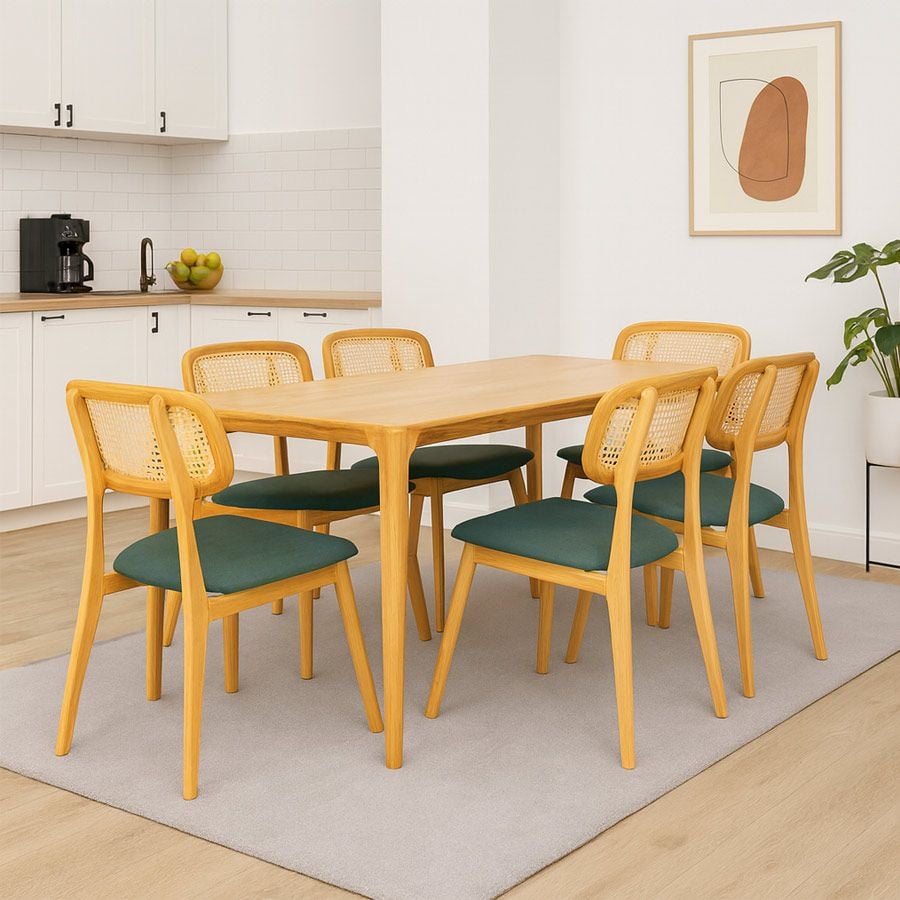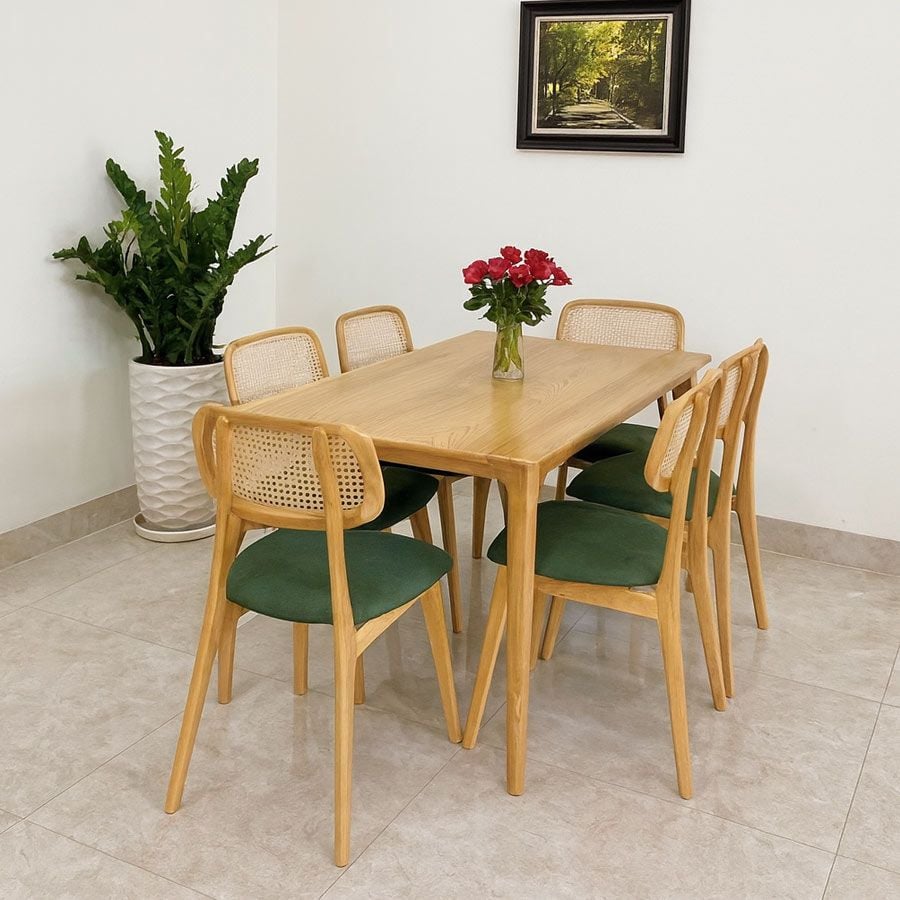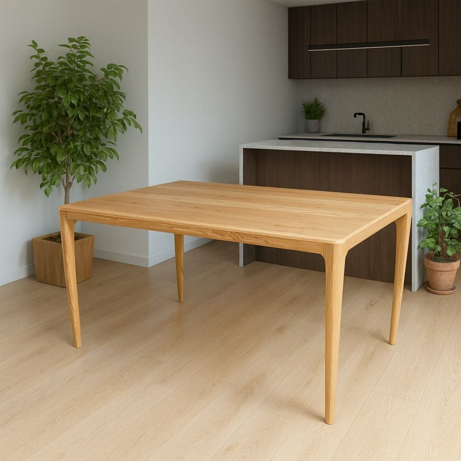 Bàn ăn Neva mang thiết kế tối giản nhưng tinh tế, phù hợp với phong cách nội thất hiện đại. Đường nét thanh mảnh kết hợp với màu gỗ tự nhiên tạo cảm giác ấm cúng, sang trọng và hài hòa trong mọi không gian sống. Chất liệu gỗ ASH cao cấp được xử lý kỹ lưỡng, vừa đảm bảo độ bền, vừa giữ được vẻ đẹp tự nhiên của vân gỗ.