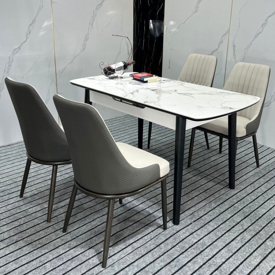 Bàn ăn mặt đá HAK25 không chỉ nổi bật bởi thiết kế mở rộng thông minh mà còn chinh phục người dùng nhờ chất liệu cao cấp và kiểu dáng tinh tế. Đây là lựa chọn hoàn hảo cho những gia đình yêu thích sự gọn gàng, linh hoạt nhưng vẫn đảm bảo yếu tố thẩm mỹ và sang trọng.