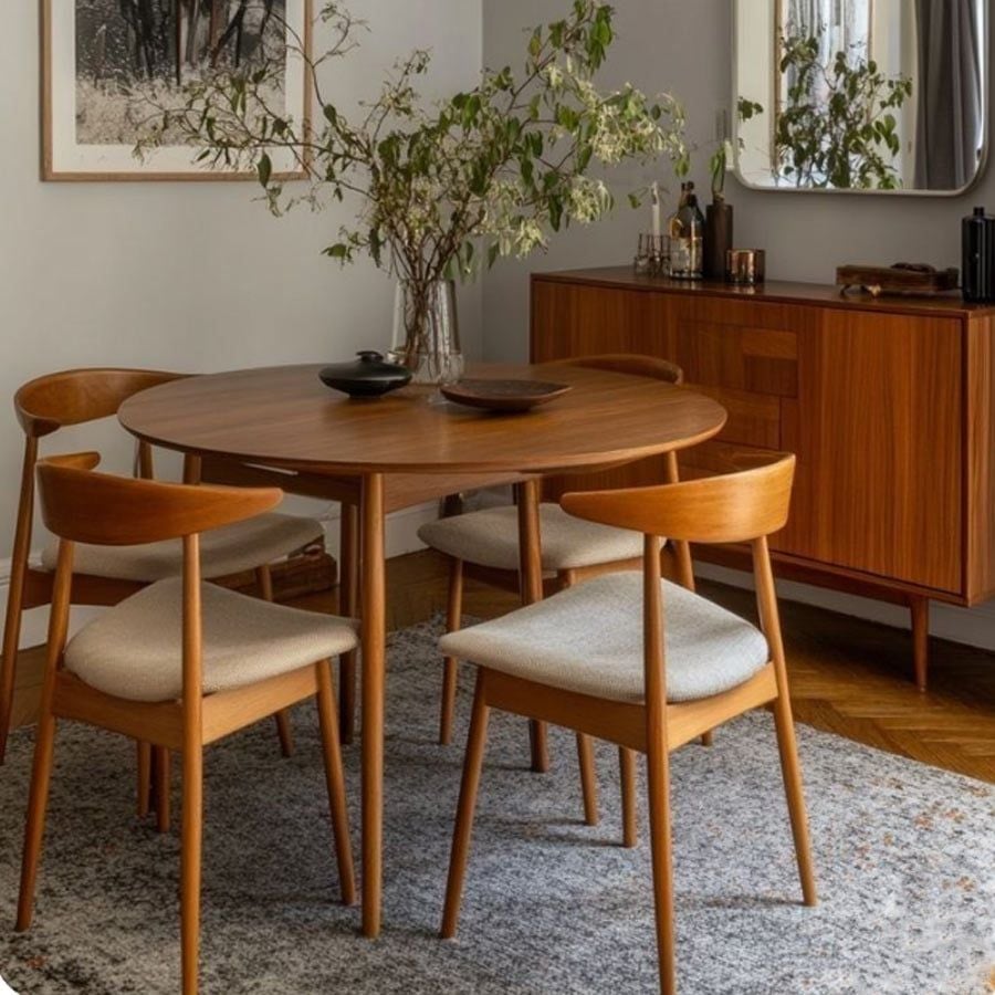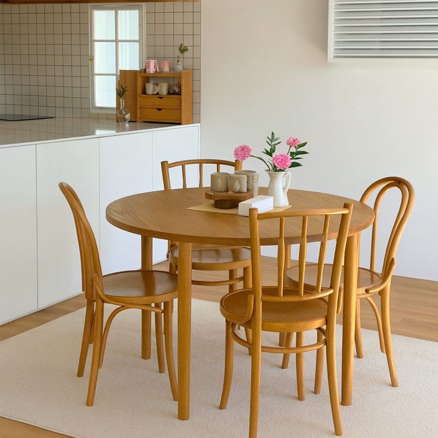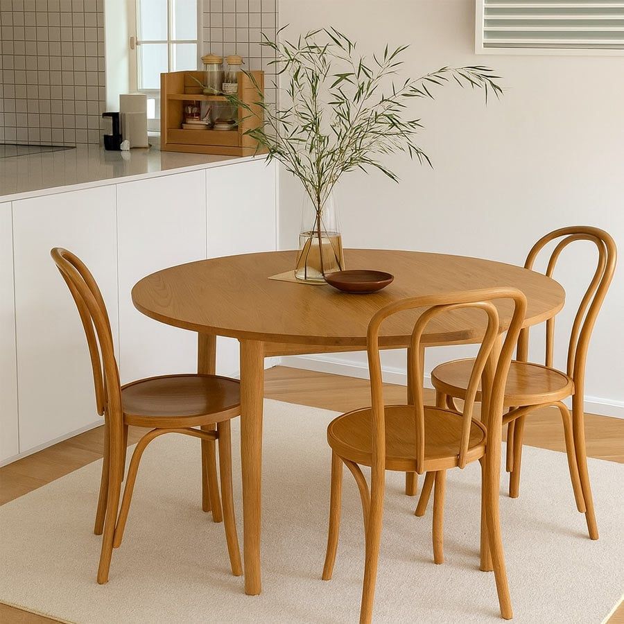 - Thiết kế tròn giúp tối ưu hóa diện tích, phù hợp cho phòng ăn nhỏ.