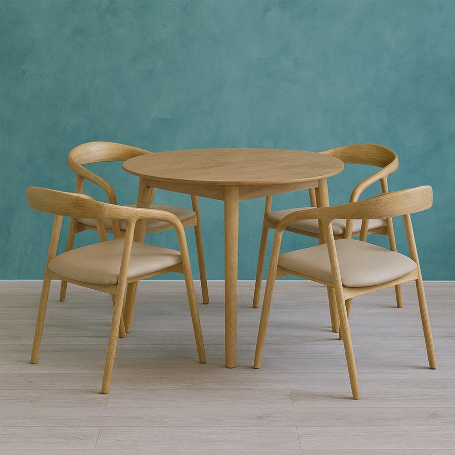 Bàn tròn 4 chân HTBA9 được thiết kế đơn giản, tinh tế, phù hợp cho nhiều không gian sống hiện đại. Với thiết kế tròn nhỏ gọn, sản phẩm mang đến sự gần gũi, ấm áp cho những bữa ăn gia đình hoặc những buổi trò chuyện thân mật. Gỗ ASH kết hợp với gỗ cao su giúp sản phẩm vừa bền chắc, vừa có màu sắc tự nhiên hài hòa, mang lại sự sang trọng nhưng không kém phần thân thiện.