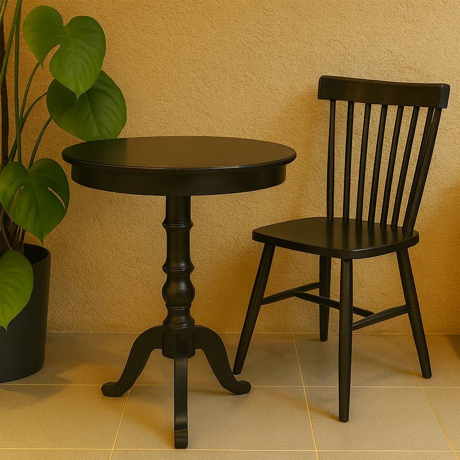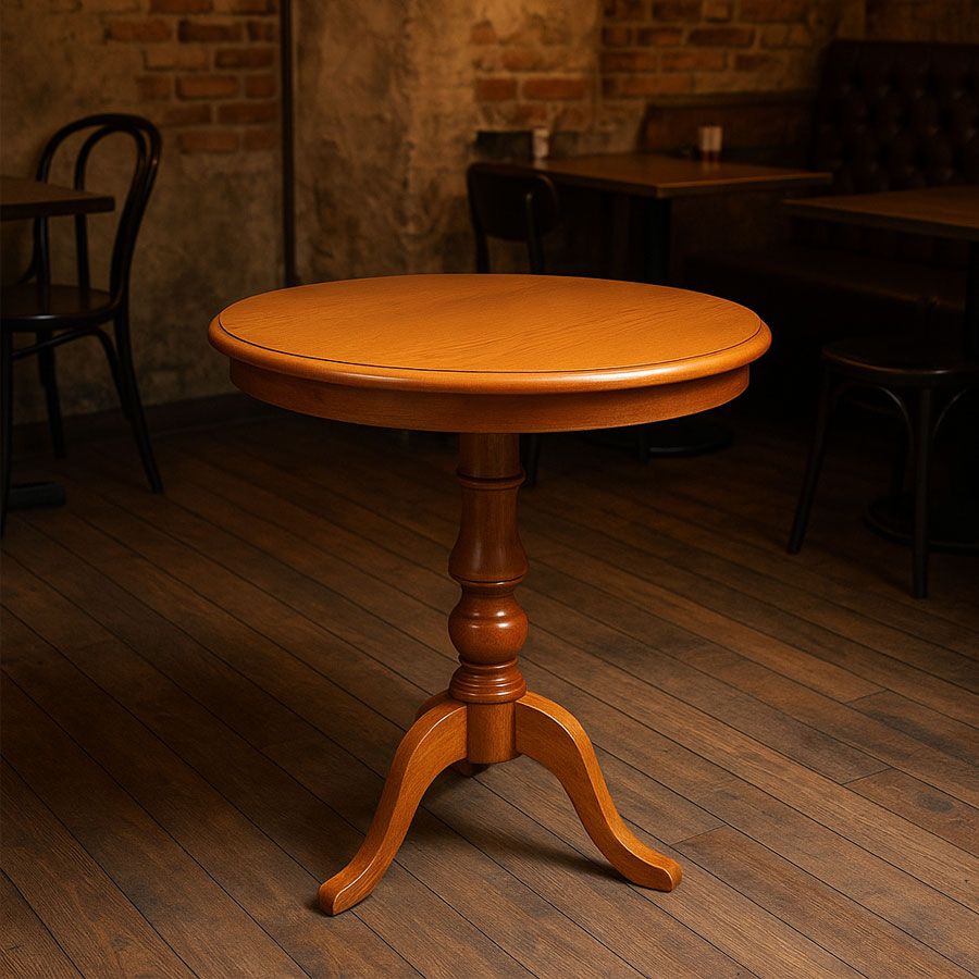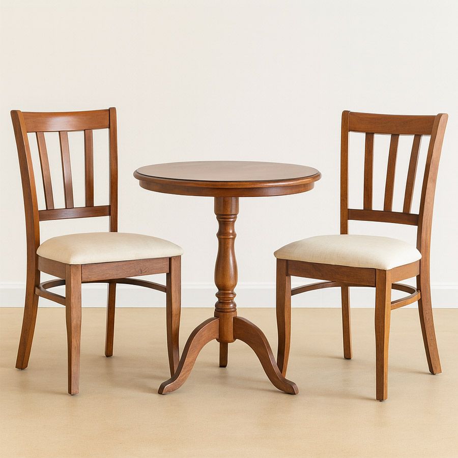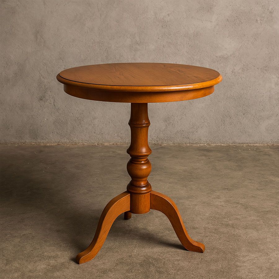 Bàn tròn cổ điển mang phong cách thanh lịch, kết hợp nét tinh tế của đường nét uốn lượn ở phần chân bàn cùng mặt bàn gỗ tròn nhỏ gọn. Sản phẩm phù hợp để đặt ở nhiều không gian như phòng khách, ban công, quán cafe hoặc góc đọc sách, tạo điểm nhấn nhẹ nhàng và sang trọng.