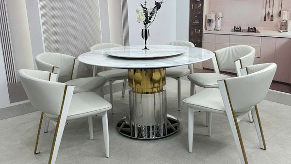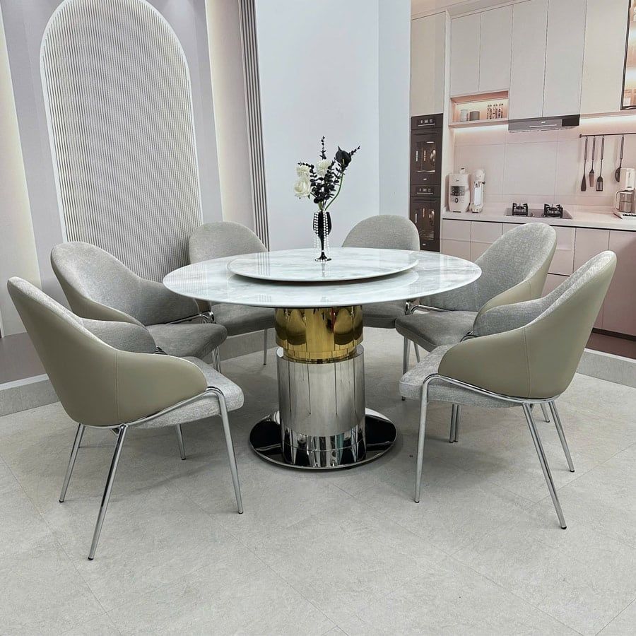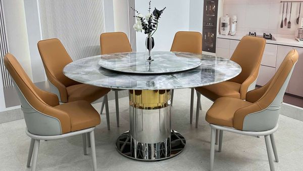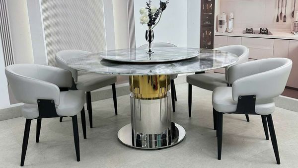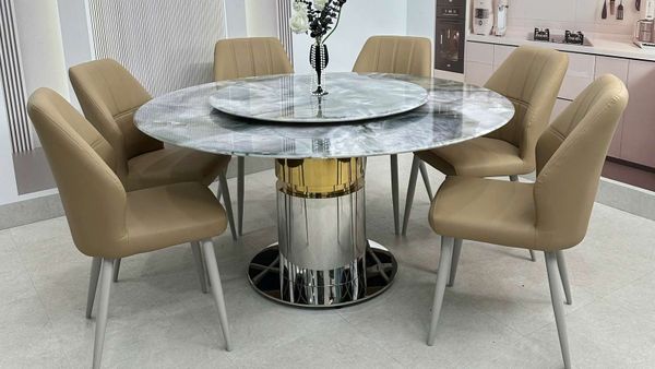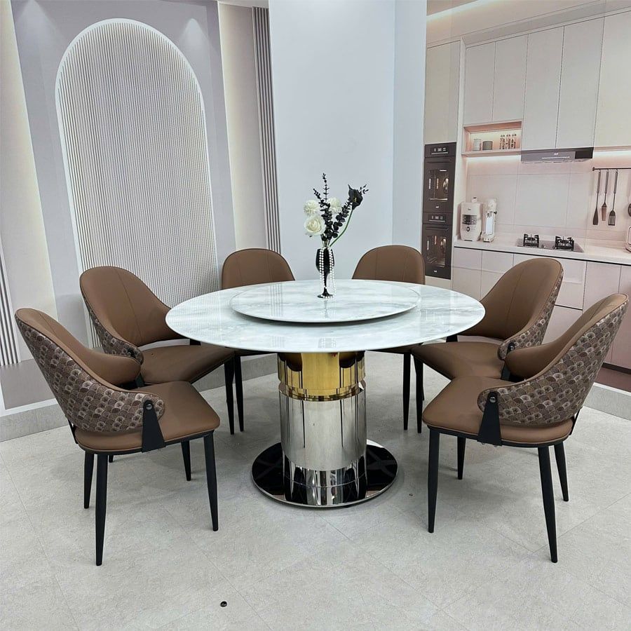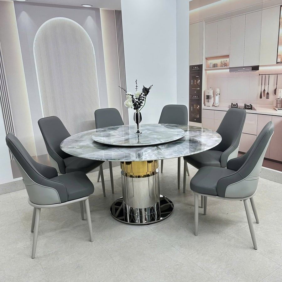 Bàn ăn tròn mặt đá HAK89 là lựa chọn hoàn hảo cho những gia đình yêu thích sự sang trọng, hiện đại và tinh tế. Với chất liệu cao cấp cùng thiết kế trụ tròn vững chắc, sản phẩm không chỉ đáp ứng công năng sử dụng mà còn trở thành điểm nhấn nổi bật cho không gian sống.