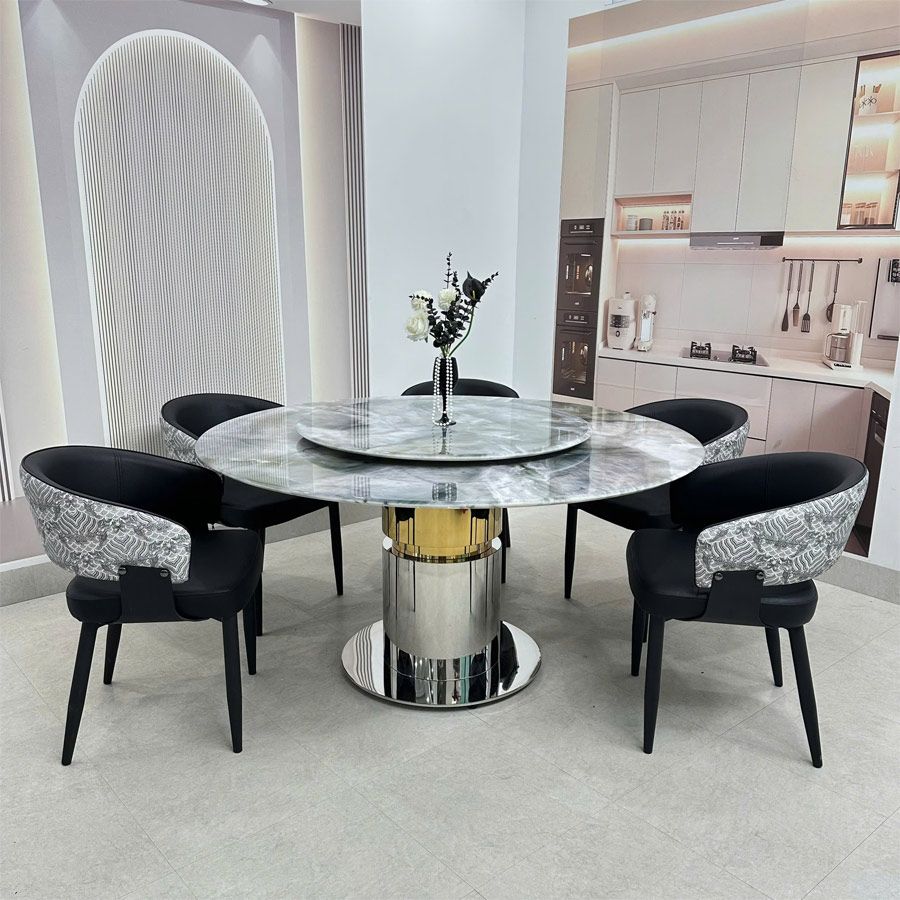 Bàn Ăn Tròn Mặt Đá Cao Cấp HAK89