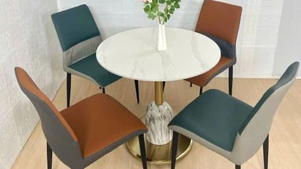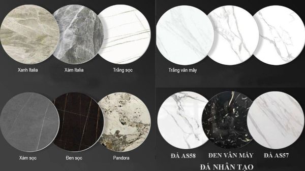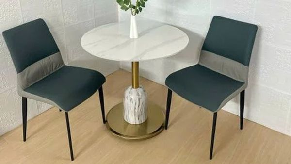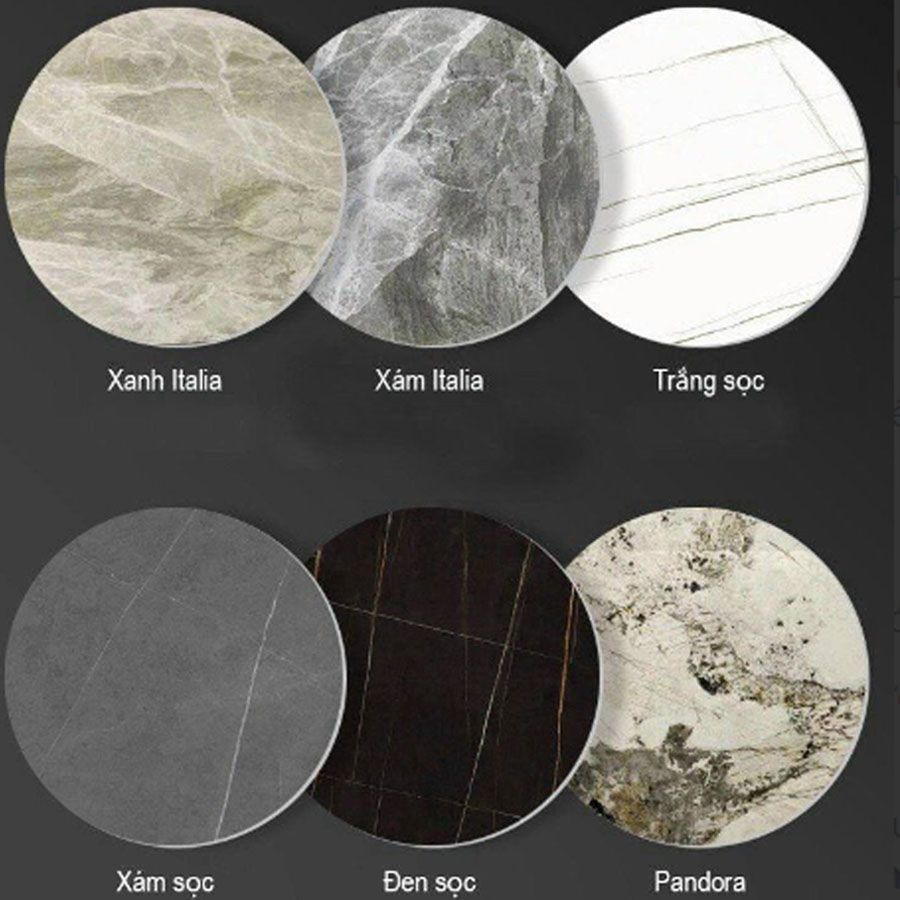 Chất liệu: Chân sắt tĩnh điện mạ vàng, Mặt bàn đá Ceramic