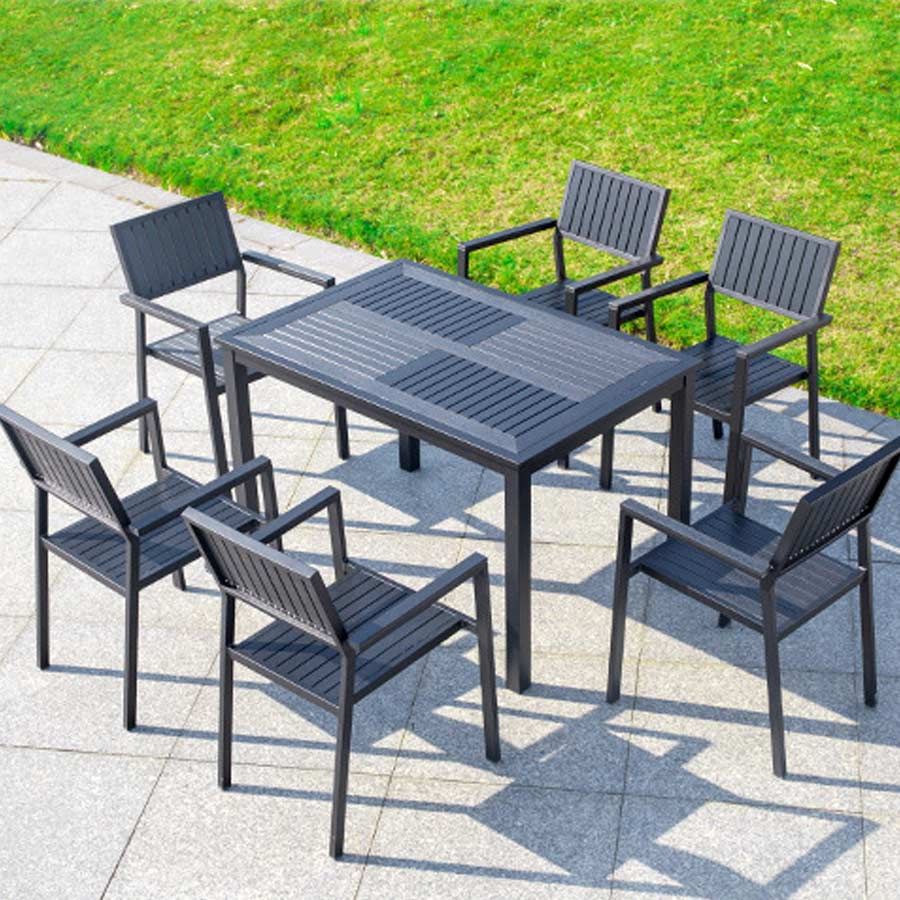 Bàn Chữ Nhật Đen Ngoài Trời Khung Nhôm Nan Polywood DPBV21B