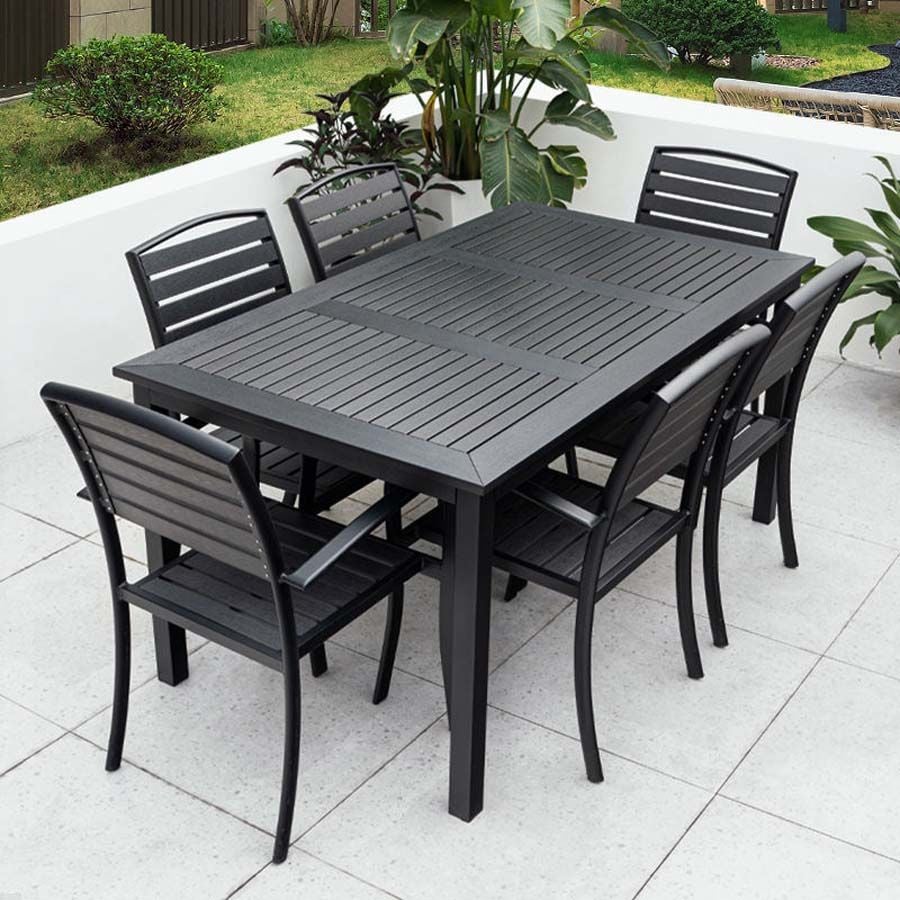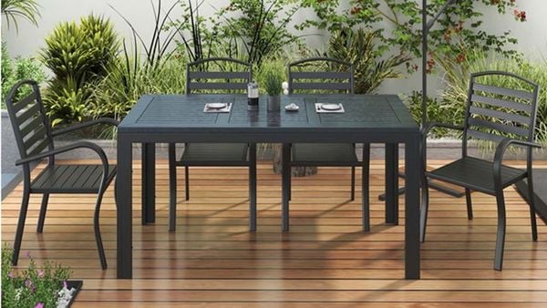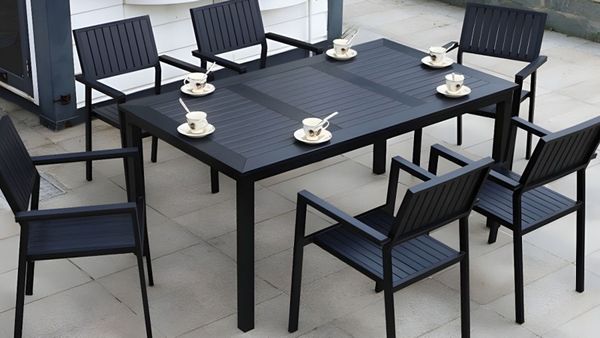 Bàn Chữ Nhật Đen Ngoài Trời Khung Nhôm Nan Polywood DPBV22