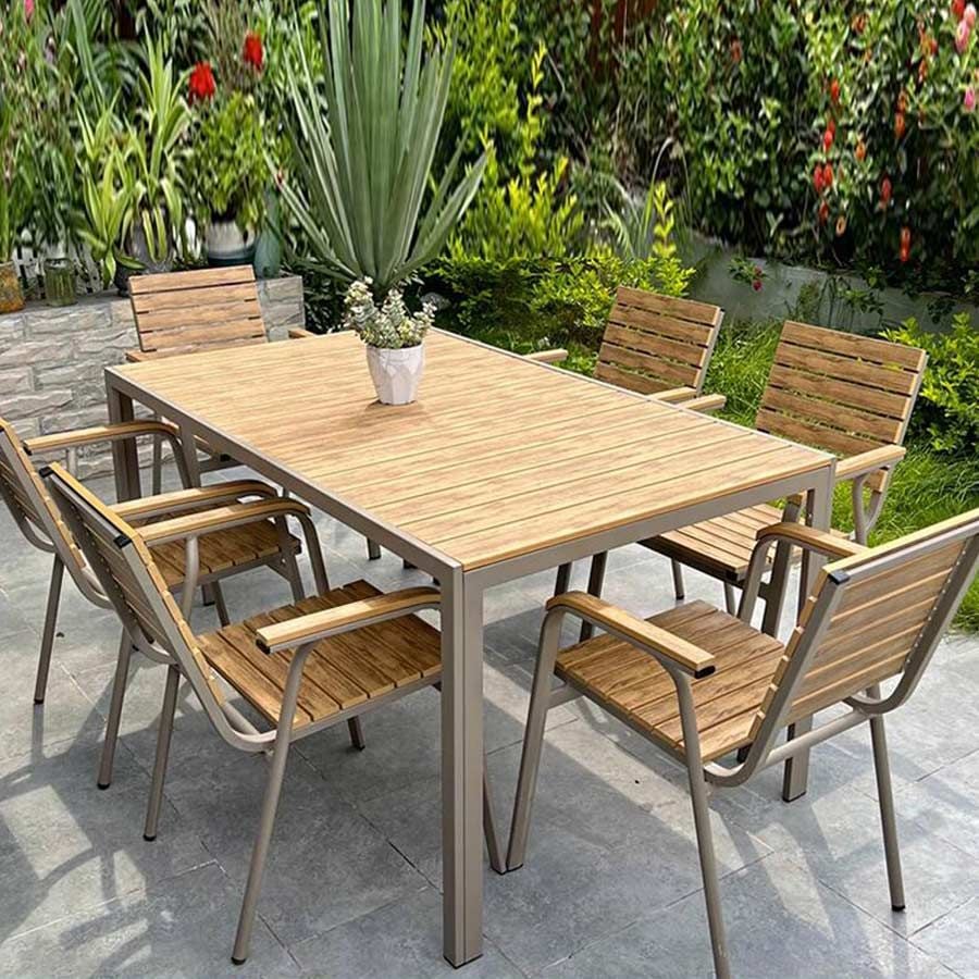 Bàn Chữ Nhật Ngoài Trời Khung Nhôm Nan Polywood DPBV20C