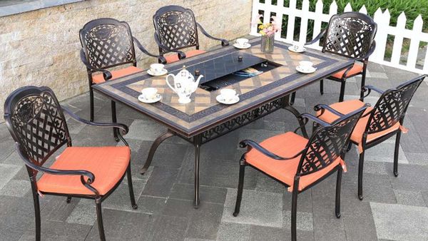 Tên sản phẩm: Bàn Chữ Nhật Nhôm Đúc Ngoài Trời Mặt Đá Có Bếp Nướng DPBV14B (không gồm ghế)