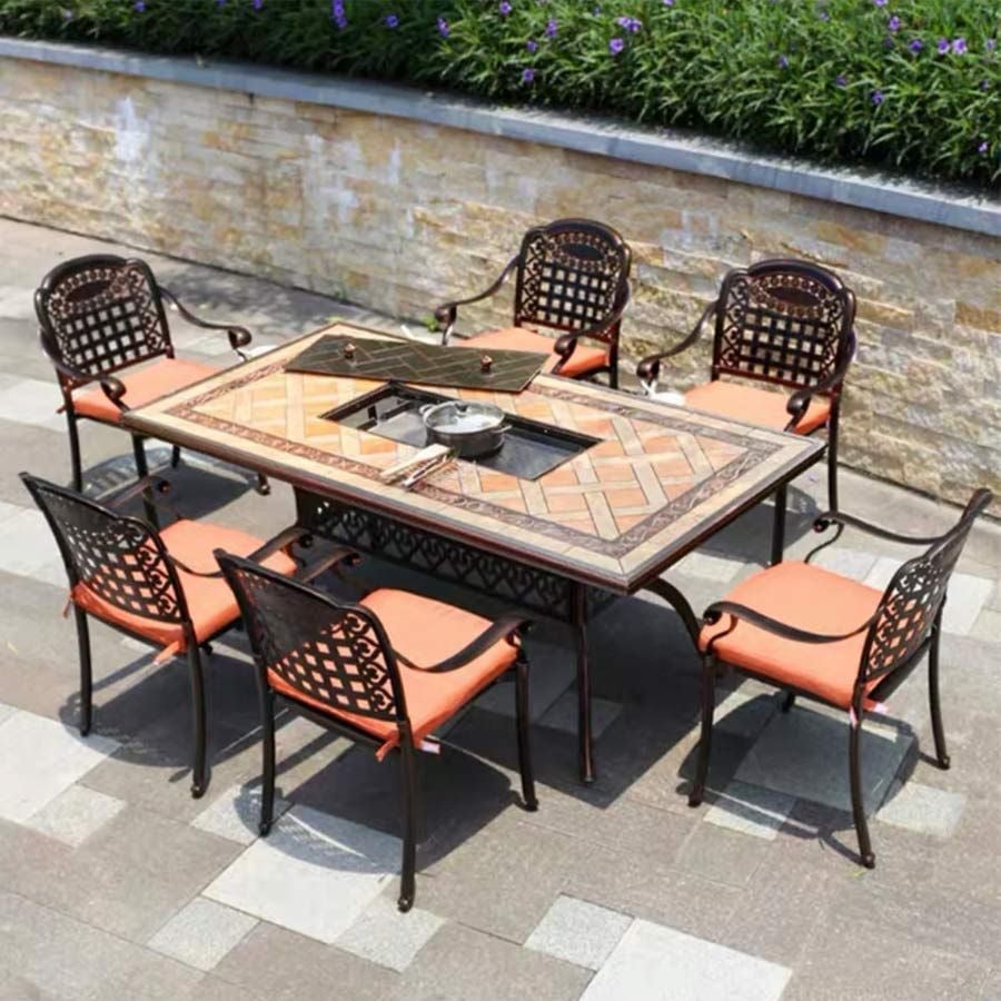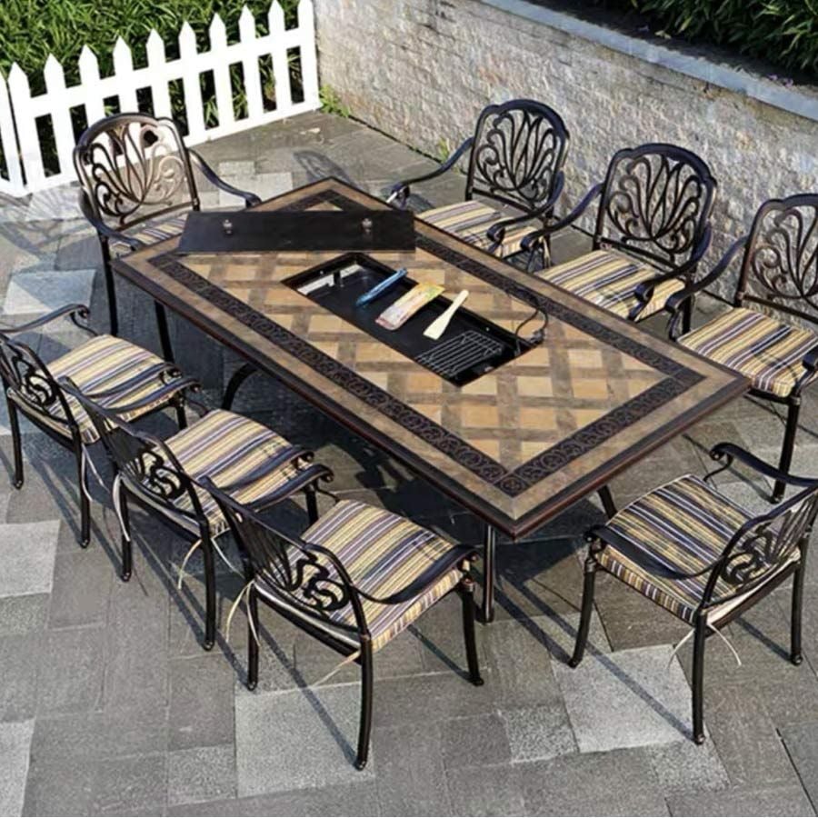 Bàn Chữ Nhật Nhôm Đúc Ngoài Trời Mặt Đá Có Bếp Nướng DPBV14B