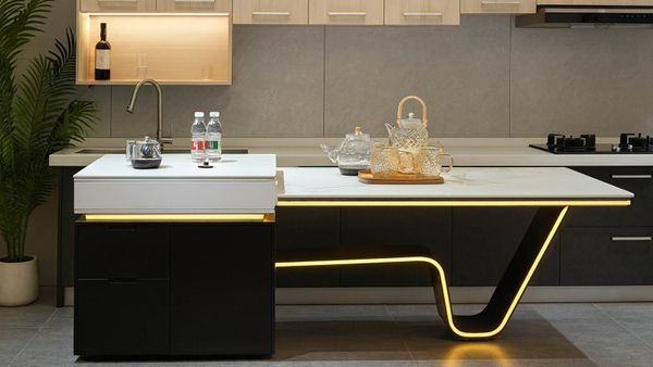 AD8829 không chỉ đóng vai trò là bàn đảo tiện ích mà còn có thể mở rộng linh hoạt từ 1700 đến 2400 mm, tối ưu cho các buổi tiệc, bữa ăn gia đình hoặc khu vực pha chế tại gia.