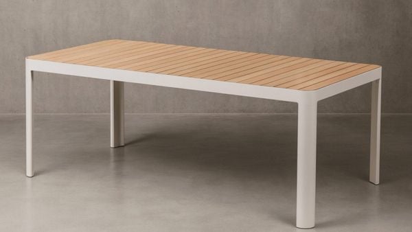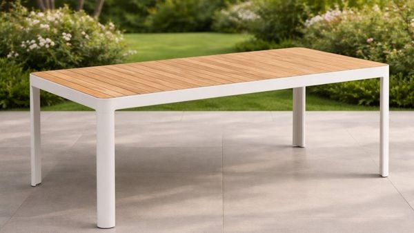 Sự kết hợp hài hòa giữa khung nhôm sơn tĩnh điện chắc chắn và mặt bàn Duraboard vân gỗ tự nhiên giúp AM07 không chỉ đẹp về thẩm mỹ mà còn bền bỉ vượt trội trước các tác động của thời tiết ngoài trời.