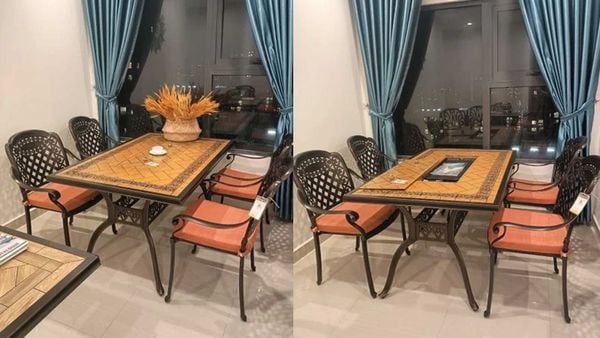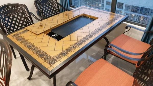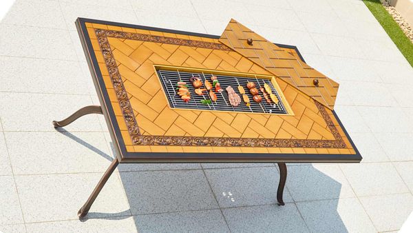 - Tích hợp bếp than: Bếp than được thiết kế tích hợp ngay trong bàn giúp bạn dễ dàng tổ chức các bữa tiệc nướng ngay tại chỗ mà không cần chuẩn bị bàn nướng riêng, tạo sự tiện lợi tối đa cho người sử dụng.