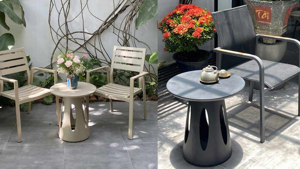 - Màu sắc tinh tế: Màu sắc bàn (như hình) giúp dễ dàng hòa nhập với các nội thất khác, tạo ra vẻ đẹp đồng bộ cho không gian ngoài trời.