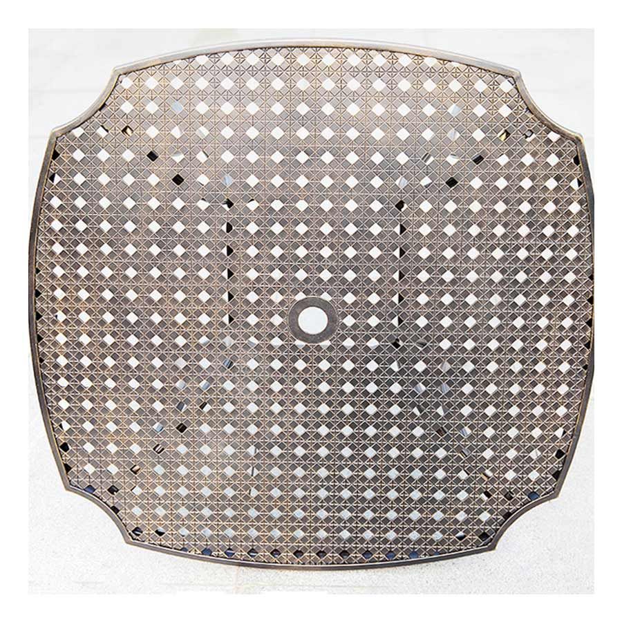 Mặt bàn được thiết kế với các hoa văn tinh xảo, tạo điểm nhấn thẩm mỹ cho không gian sử dụng. Kích thước 1000*1000*750 mm mang lại không gian sử dụng rộng rãi, phù hợp cho các bữa tiệc ngoài trời hoặc những buổi gặp gỡ bạn bè và gia đình.