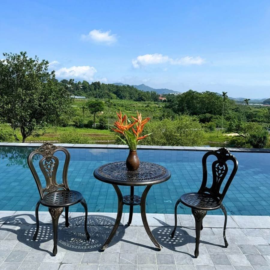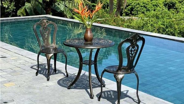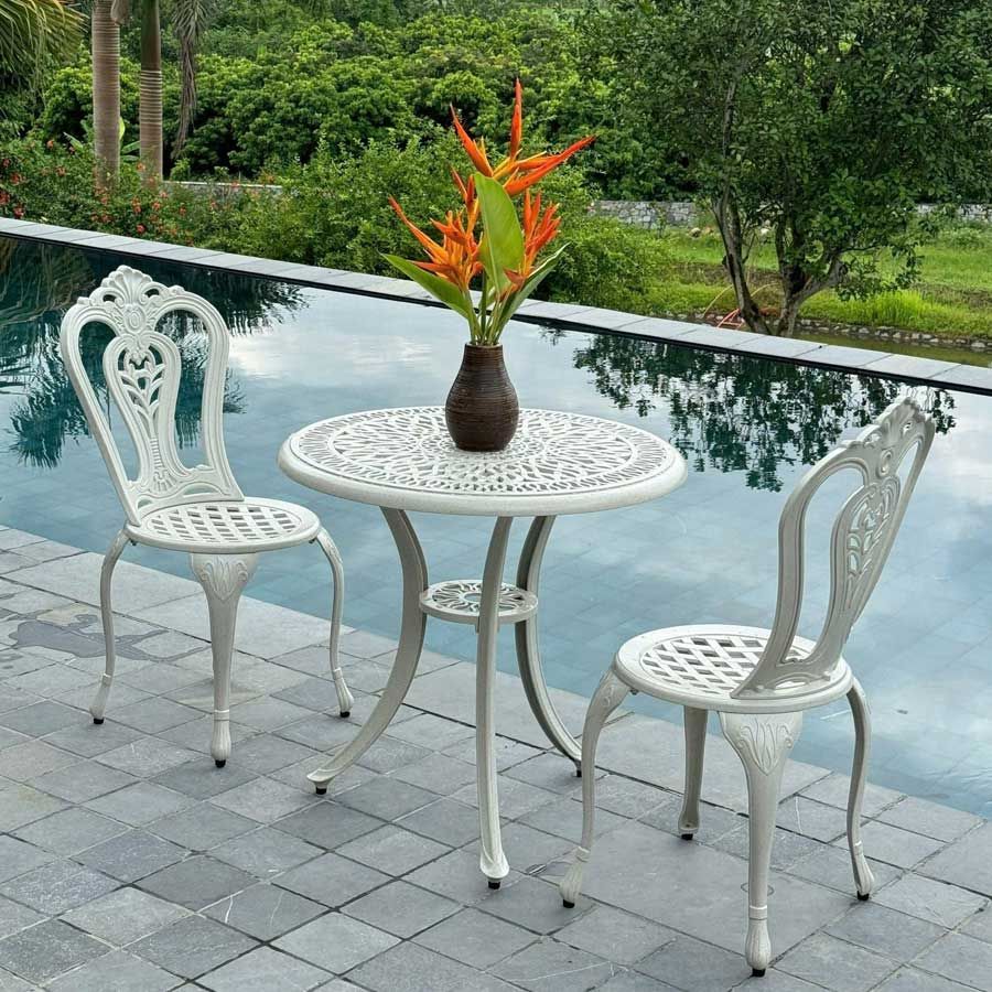 - Chất liệu nhôm đúc sơn tĩnh điện: Ghế được làm từ nhôm đúc chắc chắn, chịu lực tốt và bền bỉ. Lớp sơn tĩnh điện giúp bảo vệ bề mặt khỏi gỉ sét và các yếu tố thời tiết, giữ cho sản phẩm luôn mới mẻ.