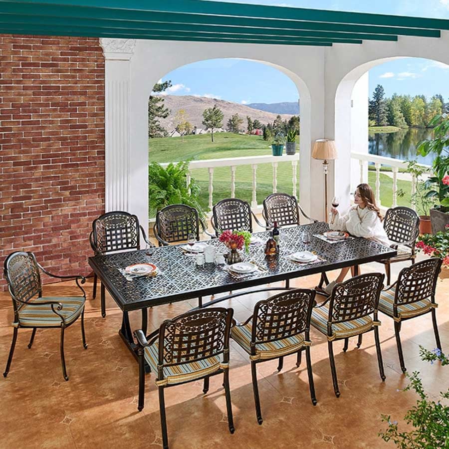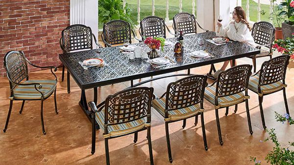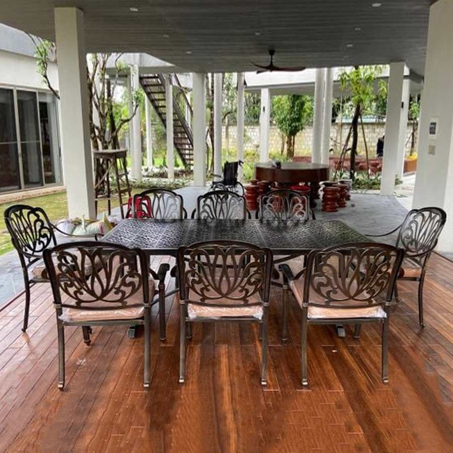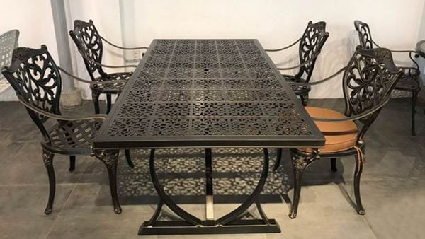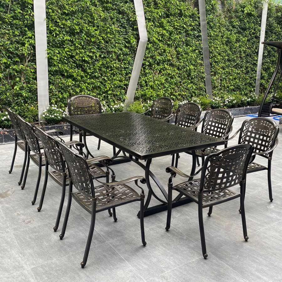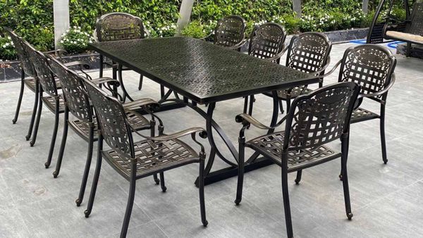 - Chất liệu nhôm đúc sơn tĩnh điện: Ghế được làm từ nhôm đúc chất lượng cao và lớp sơn tĩnh điện, giúp bàn có khả năng chống gỉ sét và đạt độ bền cao khi sử dụng ngoài trời. Sản phẩm giữ được vẻ đẹp và sự mới mẻ theo thời gian.