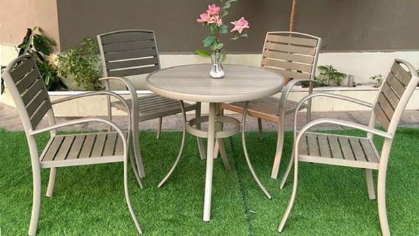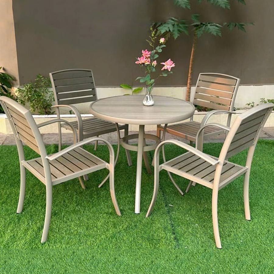 Bàn Tròn Xám Ngoài Trời Khung Nhôm Nan Polywood DPBV20A - Sự lựa chọn lý tưởng cho không gian ngoại thất