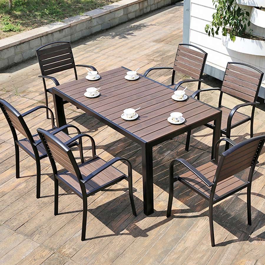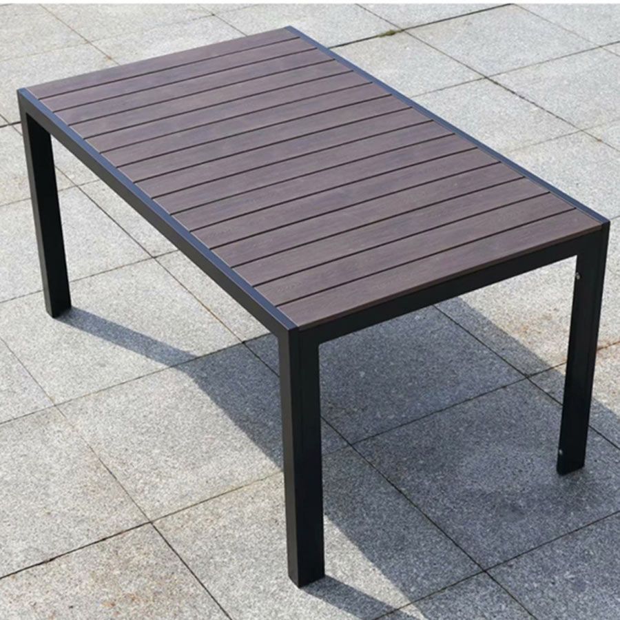 Chất liệu: Khung nhôm sơn tĩnh điện chống gỉ sét, mặt bàn nan Polywood giả gỗ chống thấm nước