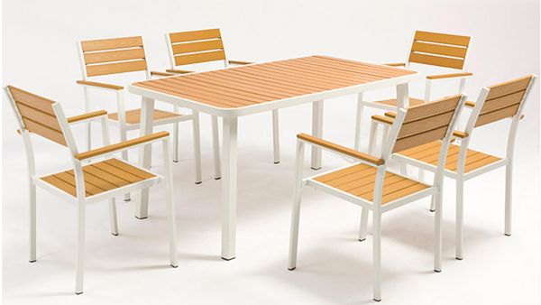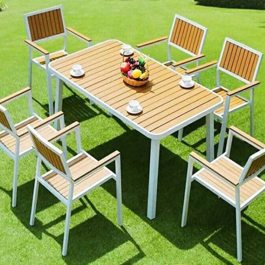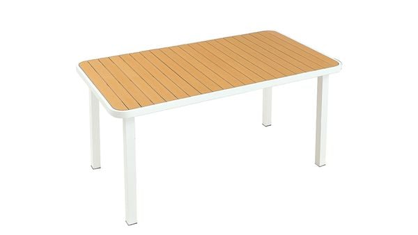 Chất liệu: Khung nhôm sơn tĩnh điện chống gỉ sét, mặt bàn nan Composite giả gỗ chống thấm nước