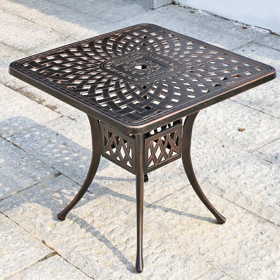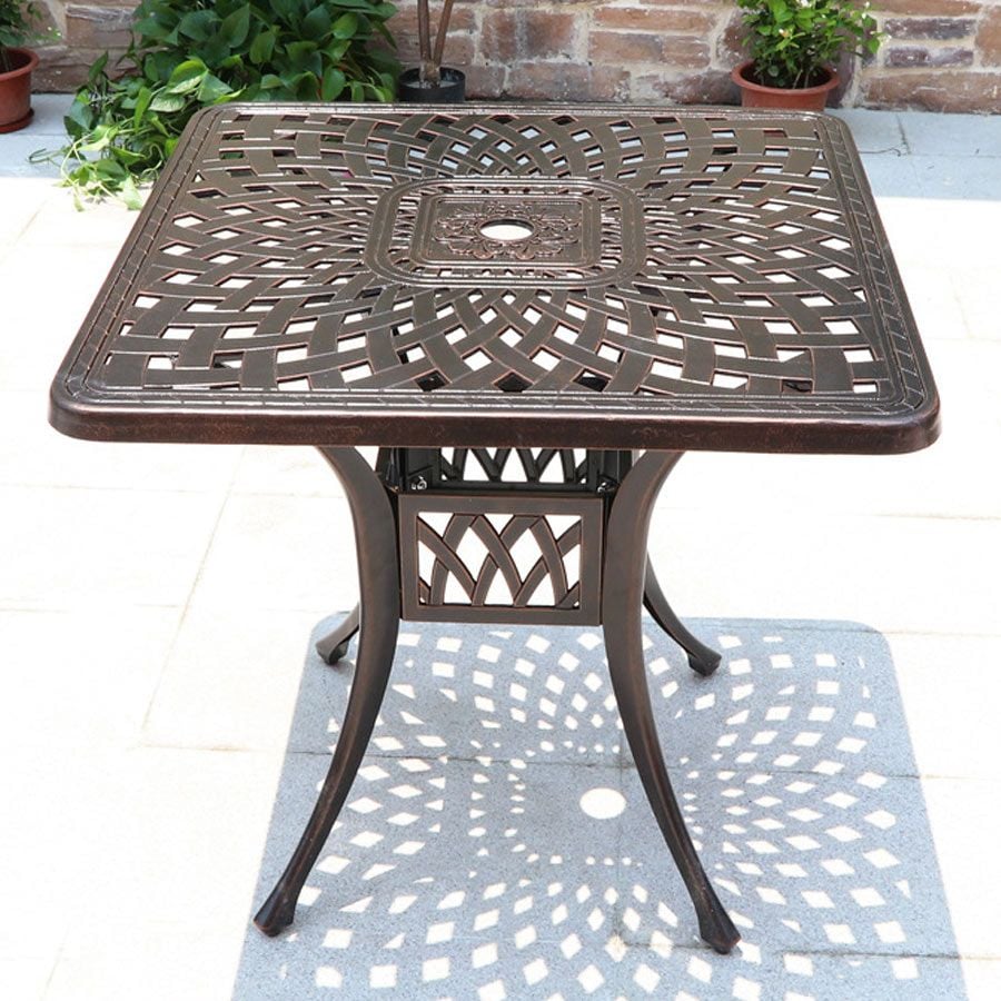 - Chất liệu khung nhôm đúc: Bàn được làm từ nhôm đúc cao cấp, giúp đảm bảo độ bền và khả năng chịu lực tốt. Lớp sơn tĩnh điện bảo vệ bề mặt khỏi gỉ sét và các yếu tố thời tiết, giữ cho sản phẩm luôn mới mẻ theo thời gian.