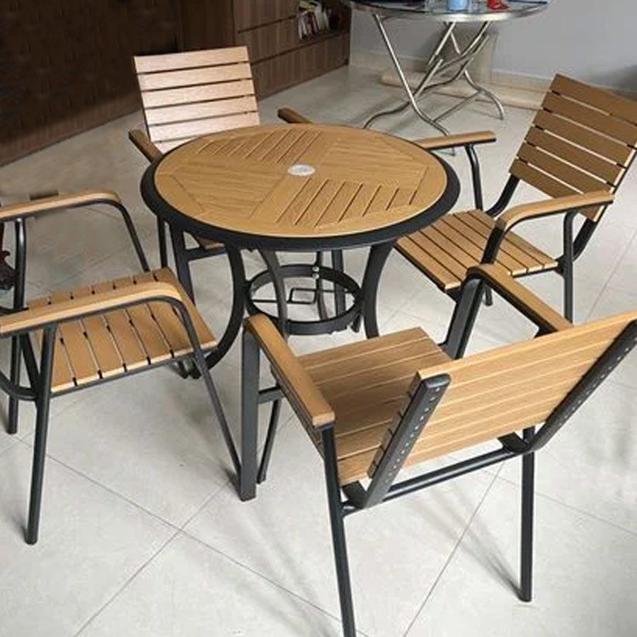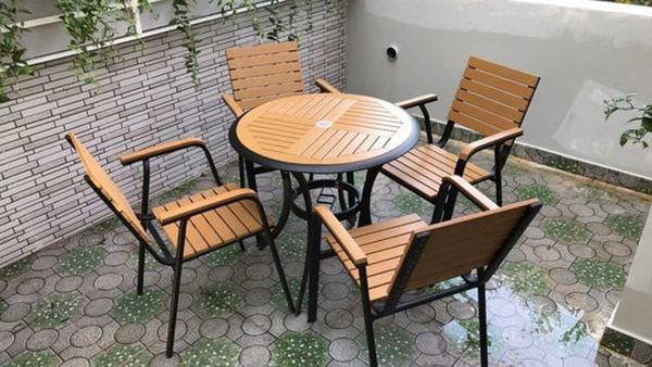 - Mặt bàn nan Composite giả gỗ chống thấm nước, dễ vệ sinh, không bị ảnh hưởng bởi thời tiết