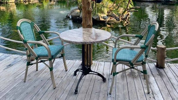 - Độ Bền Cao: Chân nhôm đúc chống gỉ và mặt gỗ phủ Resin giúp sản phẩm bền bỉ, phù hợp với môi trường ngoài trời.