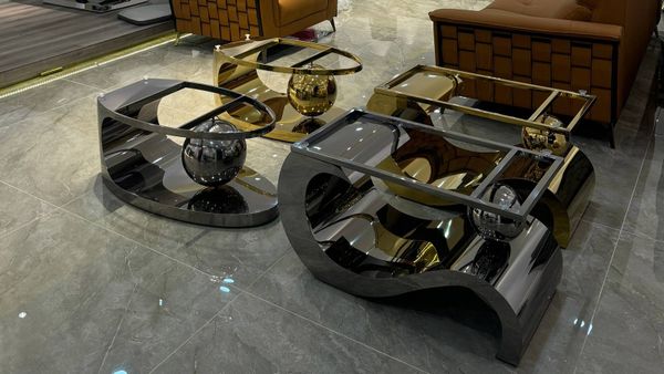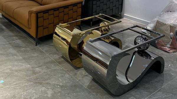 Bàn trà AKBT09 là một trong những mẫu bàn trà nghệ thuật được yêu thích nhất hiện nay nhờ thiết kế uốn lượn độc đáo, đậm phong cách luxury. Phần chân bàn được tạo hình dạng sóng mềm mại kết hợp quả cầu inox mạ PVD titanium vàng sang trọng, tạo nên hiệu ứng thị giác ấn tượng trong mọi không gian phòng khách.