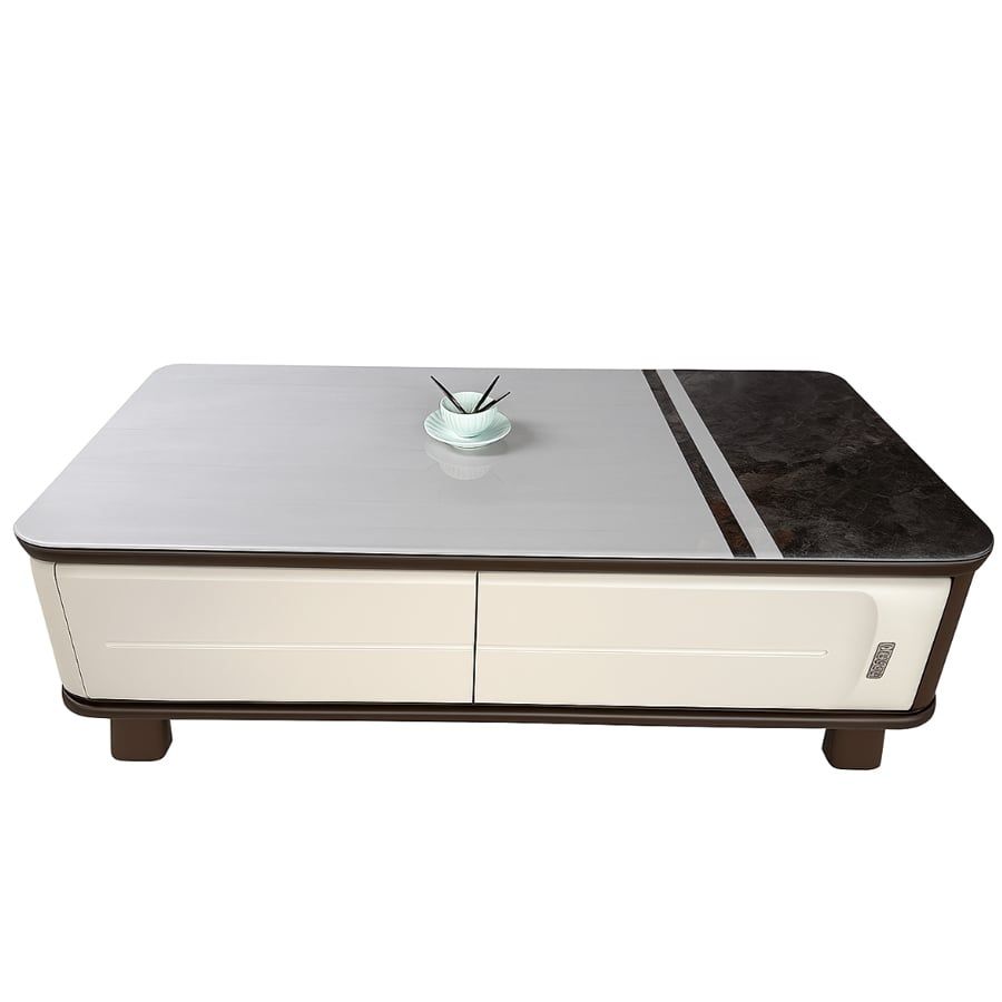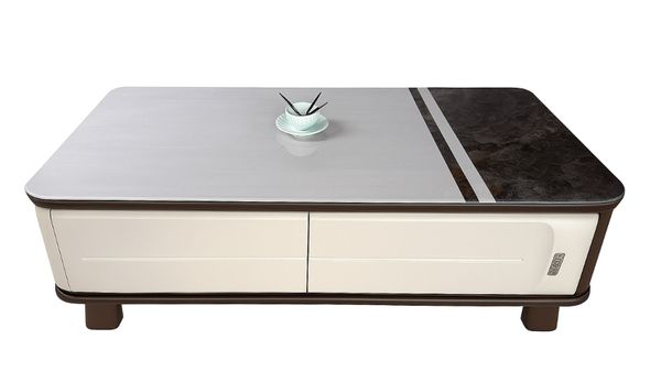 Bàn trà AD185 là sự lựa chọn lý tưởng cho những ai yêu thích phong cách hiện đại và tinh tế. Sở hữu mặt bàn kính giả đá thiết kế phá cách với hai tone màu đậm – nhạt tạo điểm nhấn nghệ thuật rõ ràng. Phần khung gỗ MDF phủ lớp sơn bóng cao cấp giúp tổng thể bàn trở nên sang trọng và bền đẹp theo thời gian.