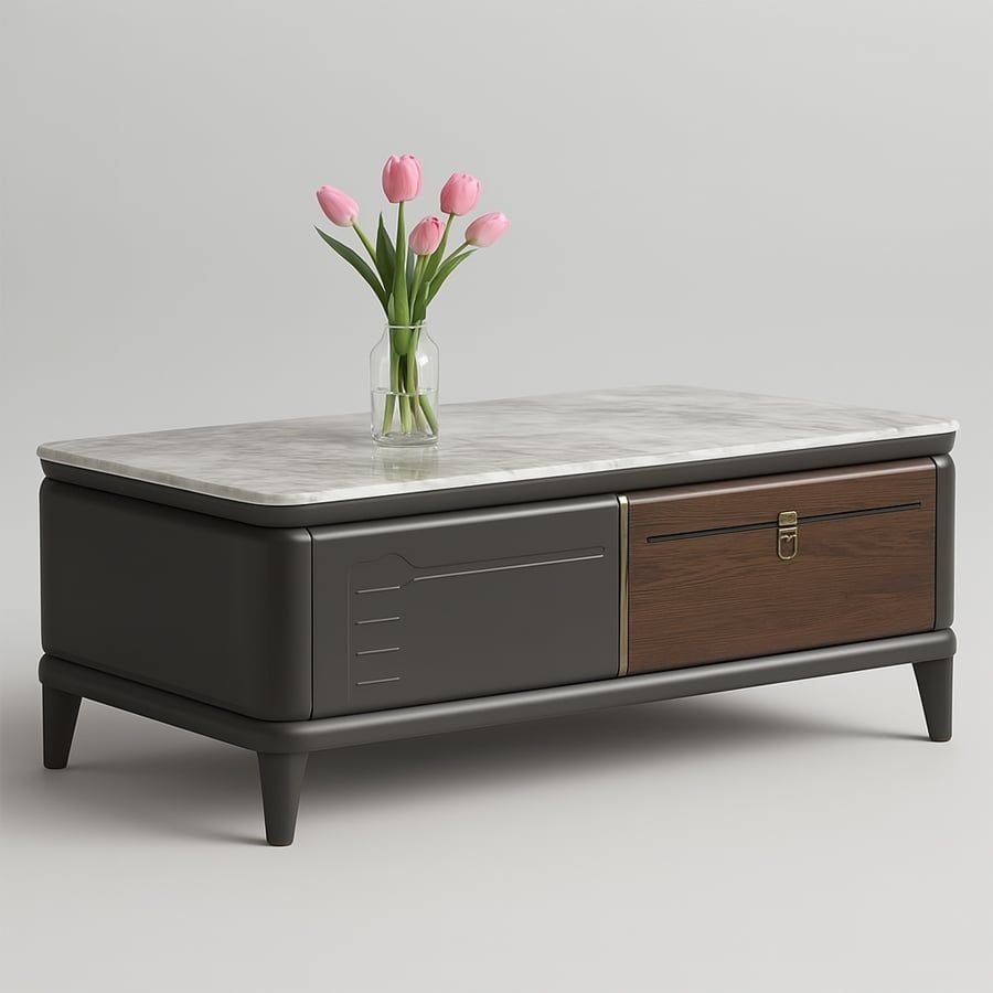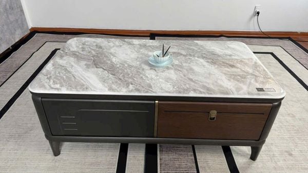 Bàn trà AD187 là sự hòa quyện giữa phong cách tối giản hiện đại và chất liệu cao cấp. Thiết kế mặt bàn bo tròn tinh tế kết hợp cùng mặt đá tinh thể vân mây sang trọng tạo nên điểm nhấn ấn tượng cho phòng khách. Sự phối màu thông minh giữa nâu đất và nâu gỗ mang đến vẻ ấm cúng, hài hòa, dễ dàng kết hợp với nhiều kiểu nội thất khác nhau.
