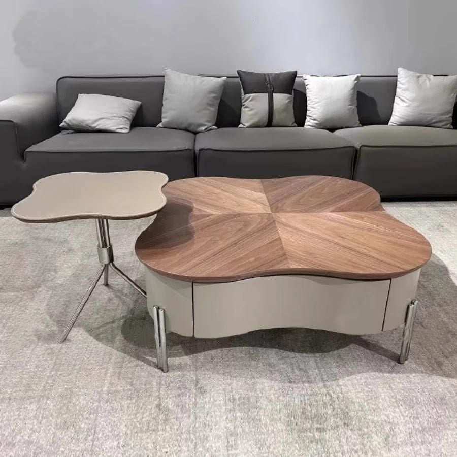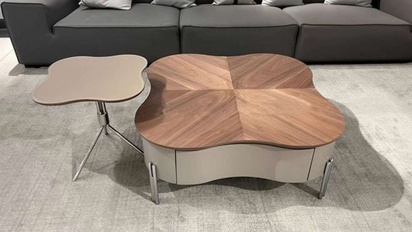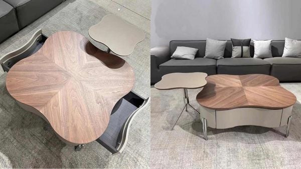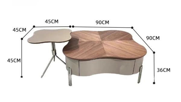 - Thiết kế hình chiếc lá tinh tế: Kết hợp bàn lớn và bàn nhỏ tạo sự hài hòa và linh hoạt.