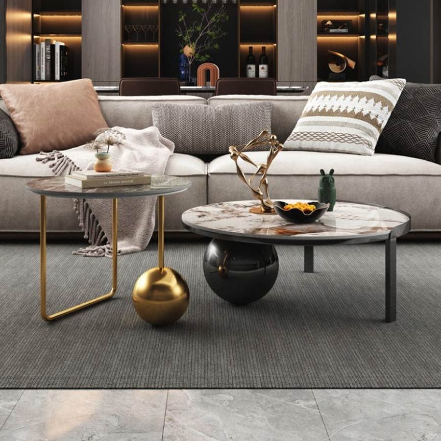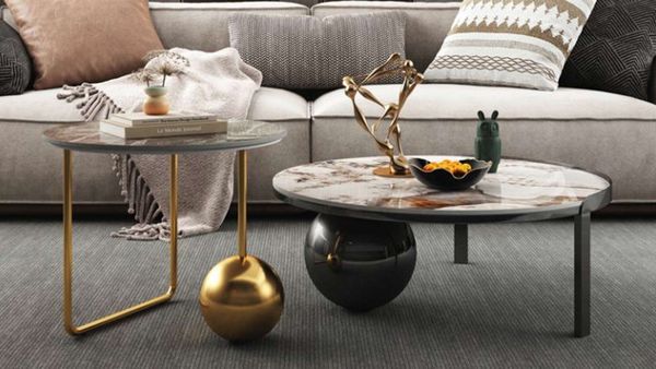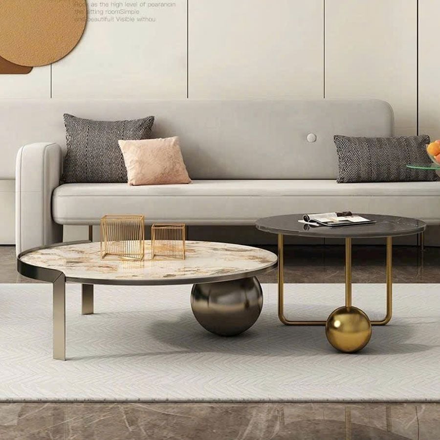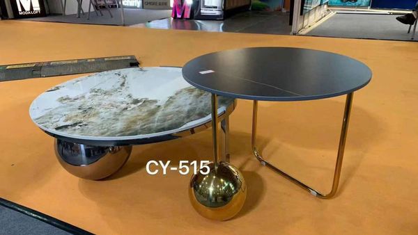 Bàn Trà Đôi CY515 - Bàn Trà Khung Sắt Mạ, Mặt Đá Ceramic