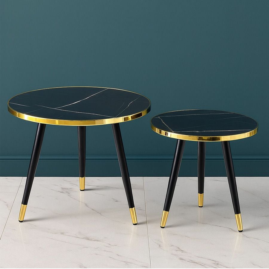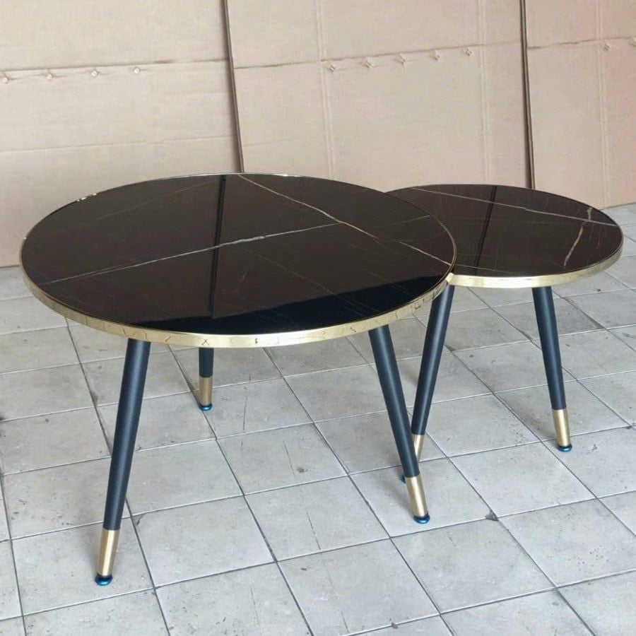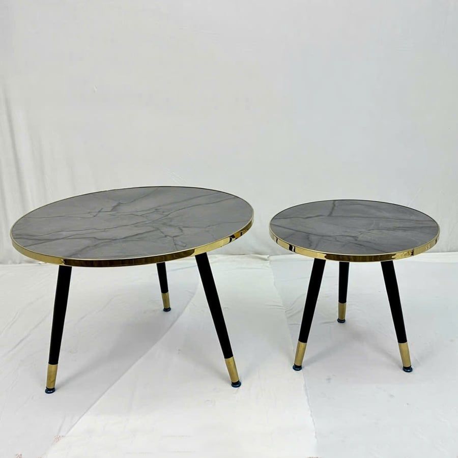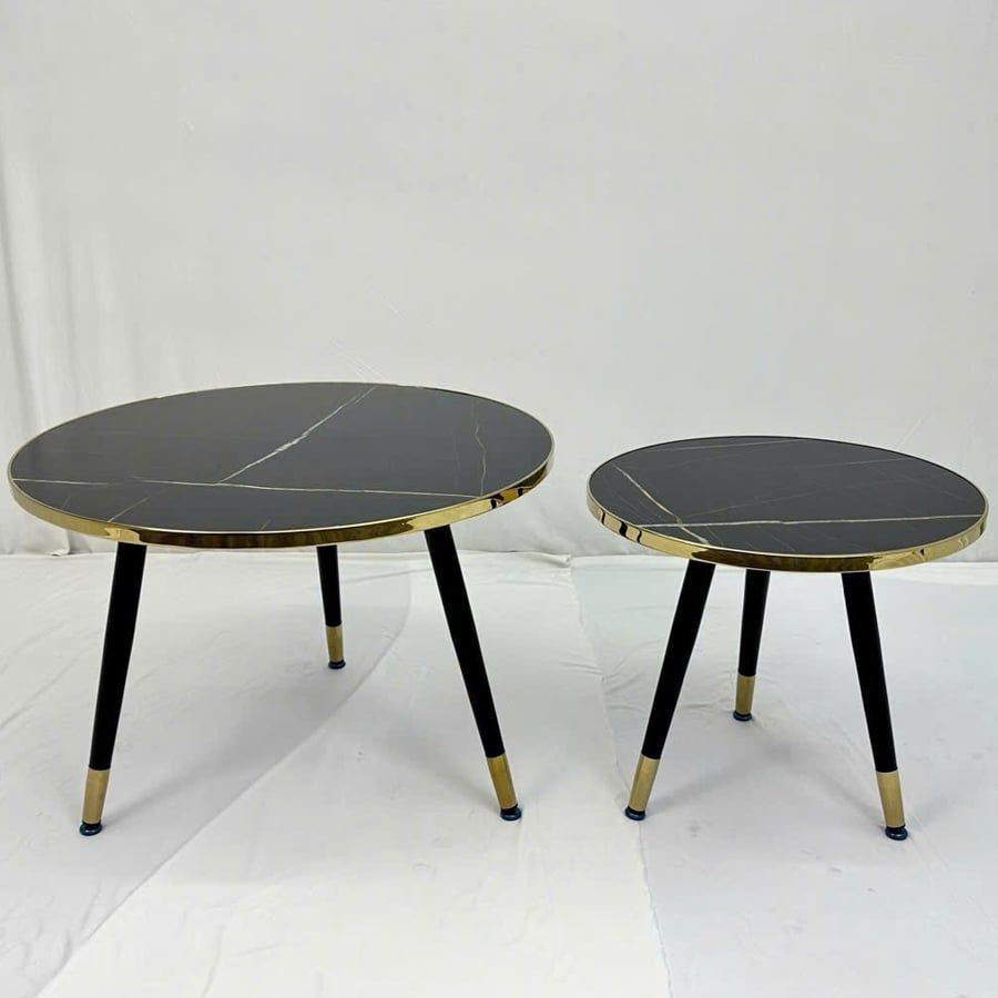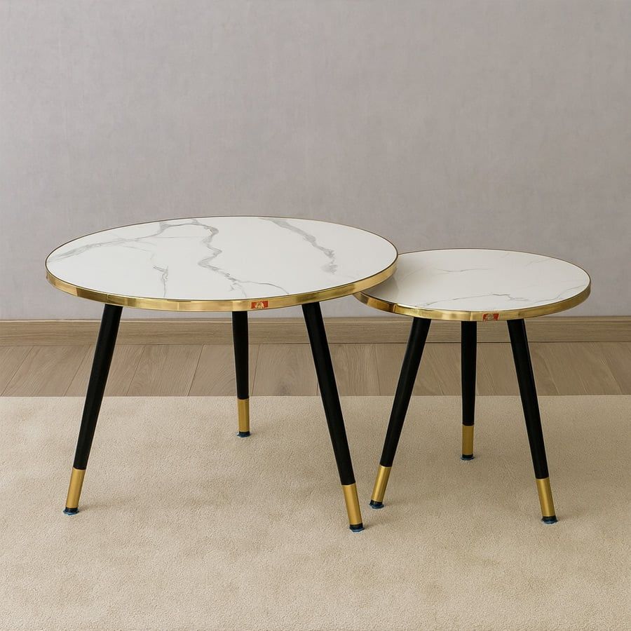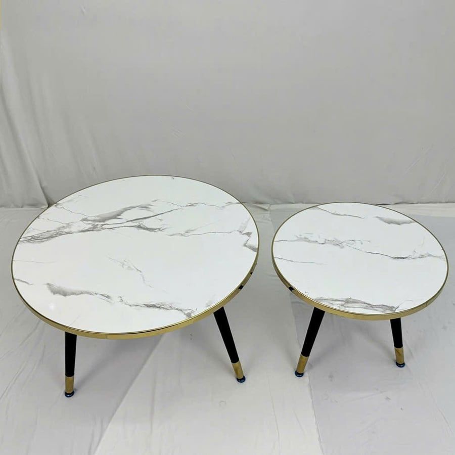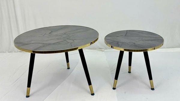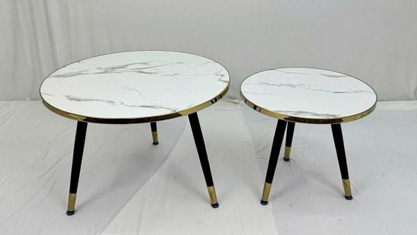 Bàn trà đôi VSC5 là sự kết hợp hoàn hảo giữa vẻ đẹp hiện đại và tính ứng dụng linh hoạt. Mặt bàn mica vân đá tạo cảm giác như đá tự nhiên nhưng nhẹ nhàng và bền bỉ hơn, trong khi viền inox mạ vàng và chân thép sơn tĩnh điện mang lại sự sang trọng và chắc chắn cho tổng thể sản phẩm. Đây là lựa chọn lý tưởng cho không gian phòng khách nhỏ, căn hộ hiện đại hoặc quán cafe phong cách.