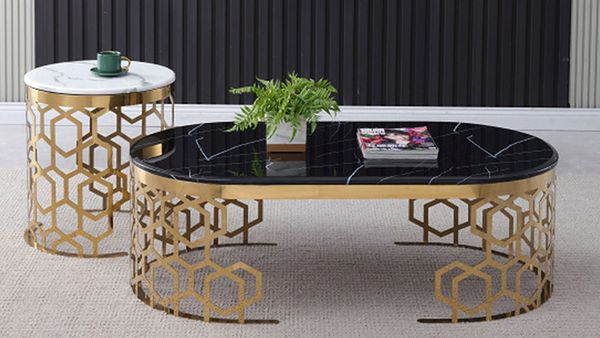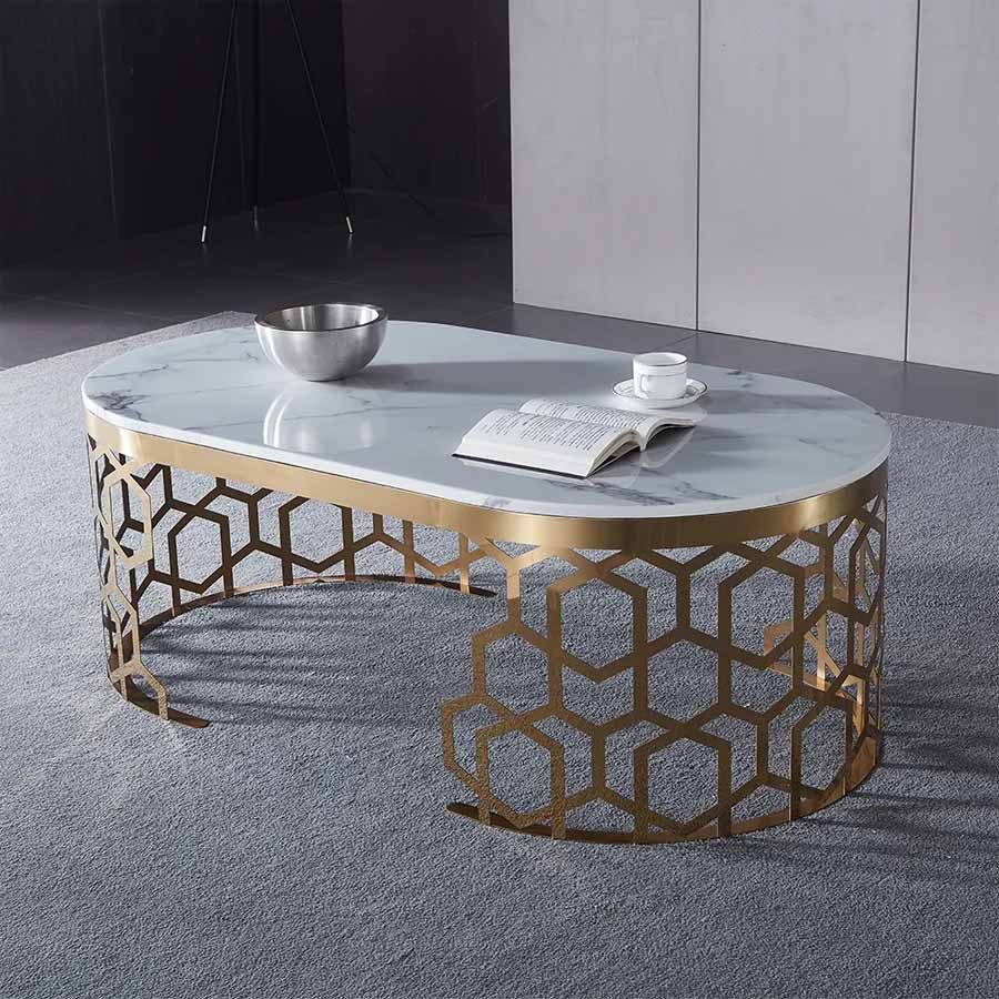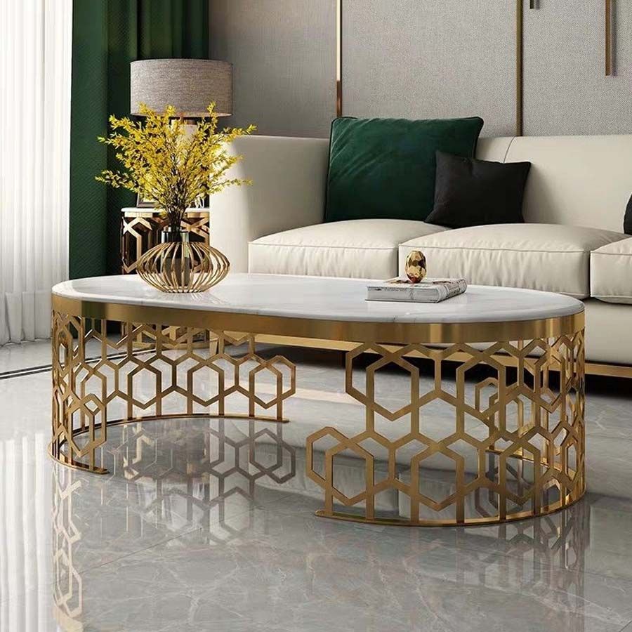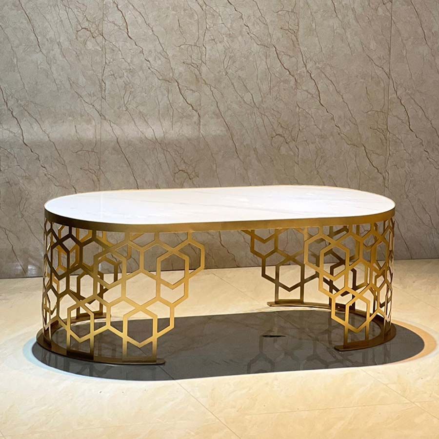 Bàn Trà Hình Oval Chân Mạ Vàng Hình Tổ Ong DPB17 - Vẻ Đẹp Sang Trọng